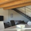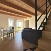 Piano terra: dal giardino si accede al grande e luminoso salone con aria condizionata, composto da divani, divano-letto matrimoniale, tavolo consolle e scala di accesso al primo piano; il soggiorno è collegato alla sala da pranzo, dotata di due tavoli, e al primo bagno, suddiviso in due spazi, nel quale è presente un’ariosa doccia walk-in. La cucina è completamente fornita e accessoriata con lavastoviglie, nonché dotata di una penisola con piano a induzione.