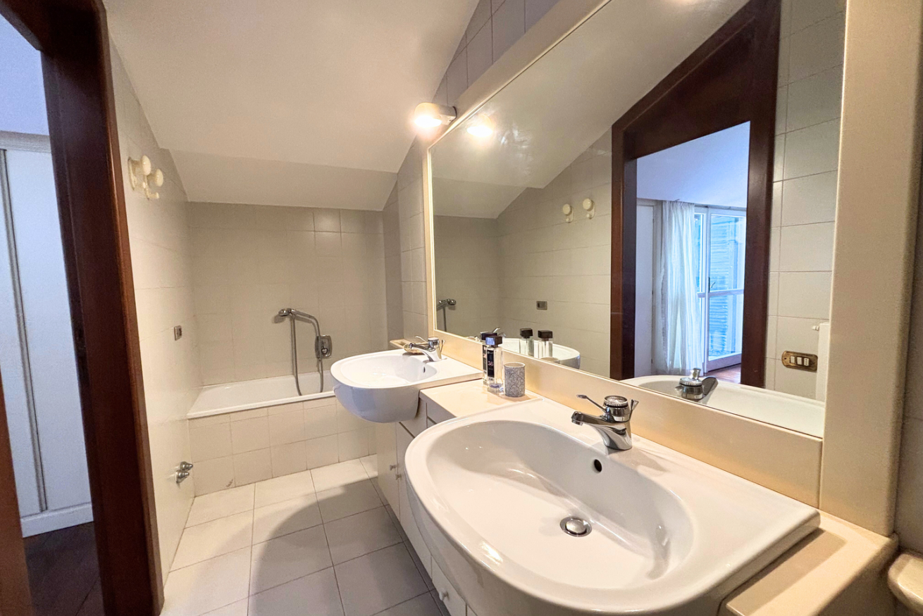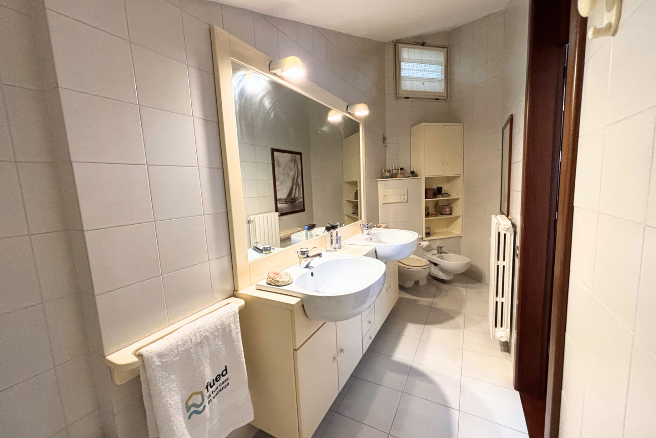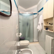 Descrizione: al primo piano di piccola palazzina, ingresso su luminoso soggiorno con tavolo da pranzo e divani - cucina attrezzata - camera matrimoniale - primo bagno con box doccia. Dal soggiorno si accede al grande soppalco con letto alla francese e accesso al piccolo terrazzino - secondo bagno con vasca. Completano la soluzione lavatrice, lavastoviglie, aria condizionata in zona giorno e posto auto nella corte condominiale. Animali non ammessi.
