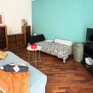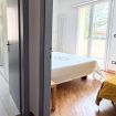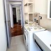 Ingresso su ampio e luminoso soggiorno con divani, tavolo da pranzo, moderno angolo cottura con piano ad induzione e balcone attrezzato con tavolo e sedie - camera con letto matrimoniale e letto a castello - seconda camera con letto matrimoniale e letto singolo - bagno completo con box doccia - secondo bagno con lavatrice.