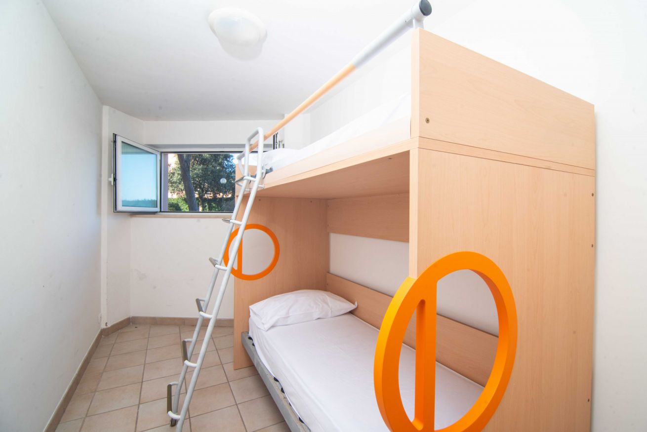 Piano inferiore: camera padronale con letto matrimoniale – seconda camera con letto a castello.