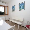 Descrizione: piano secondo. Soggiorno con tavolo da pranzo, divano-letto matrimoniale ed angolo cottura con lavatrice – camera matrimoniale – seconda camera con letto singolo – bagno con box doccia – terrazzo attrezzato con tavolo e sedie – Aria condizionata in zona giorno. Animali ammessi.
