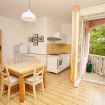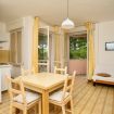 Descrizione: ampio soggiorno con tavolo, divano-letto matrimoniale e angolo cottura - balcone d'ingresso attrezzato con tavolo e sedie - camera matrimoniale – bagno con box doccia e lavatrice – posto auto.