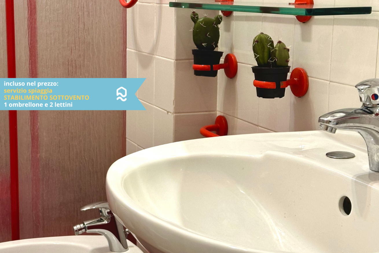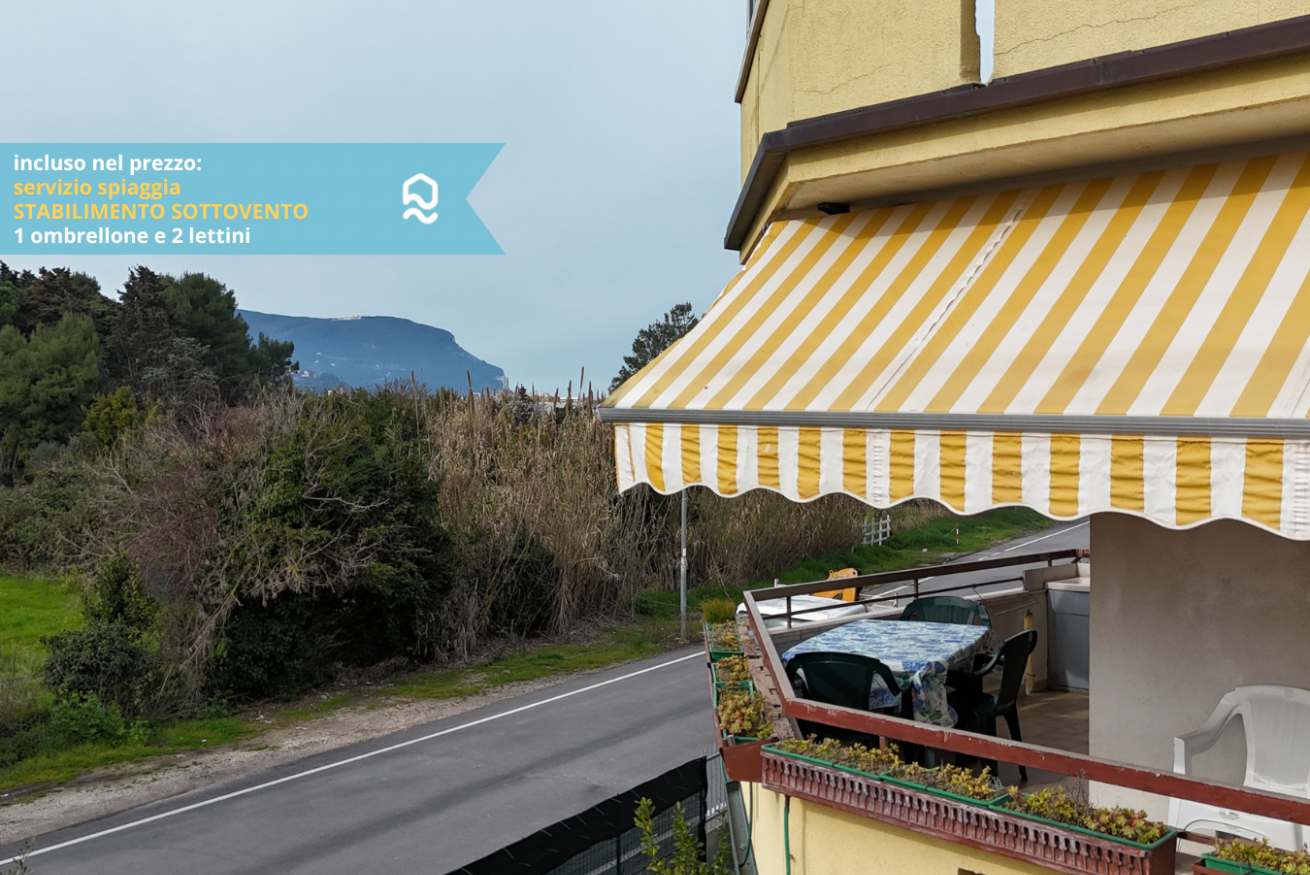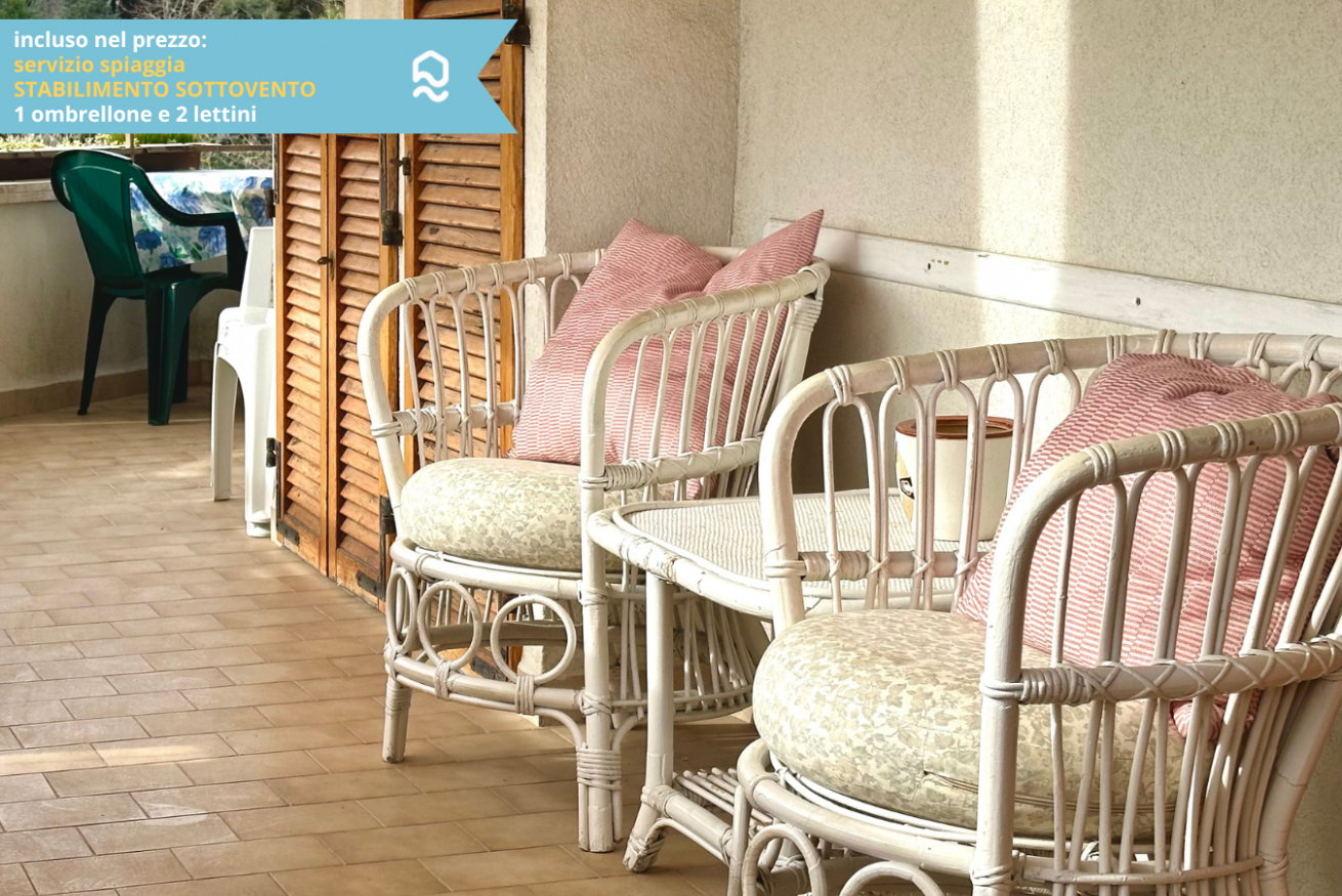 Ubicazione: in posizione tranquilla, a soli 150 metri dal mare e dalla via Litoranea. Servizio spiaggia incluso presso lo stabilimento balneare Sottovento Beach Club!
