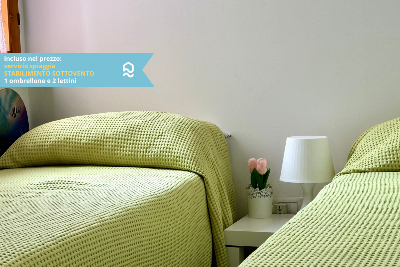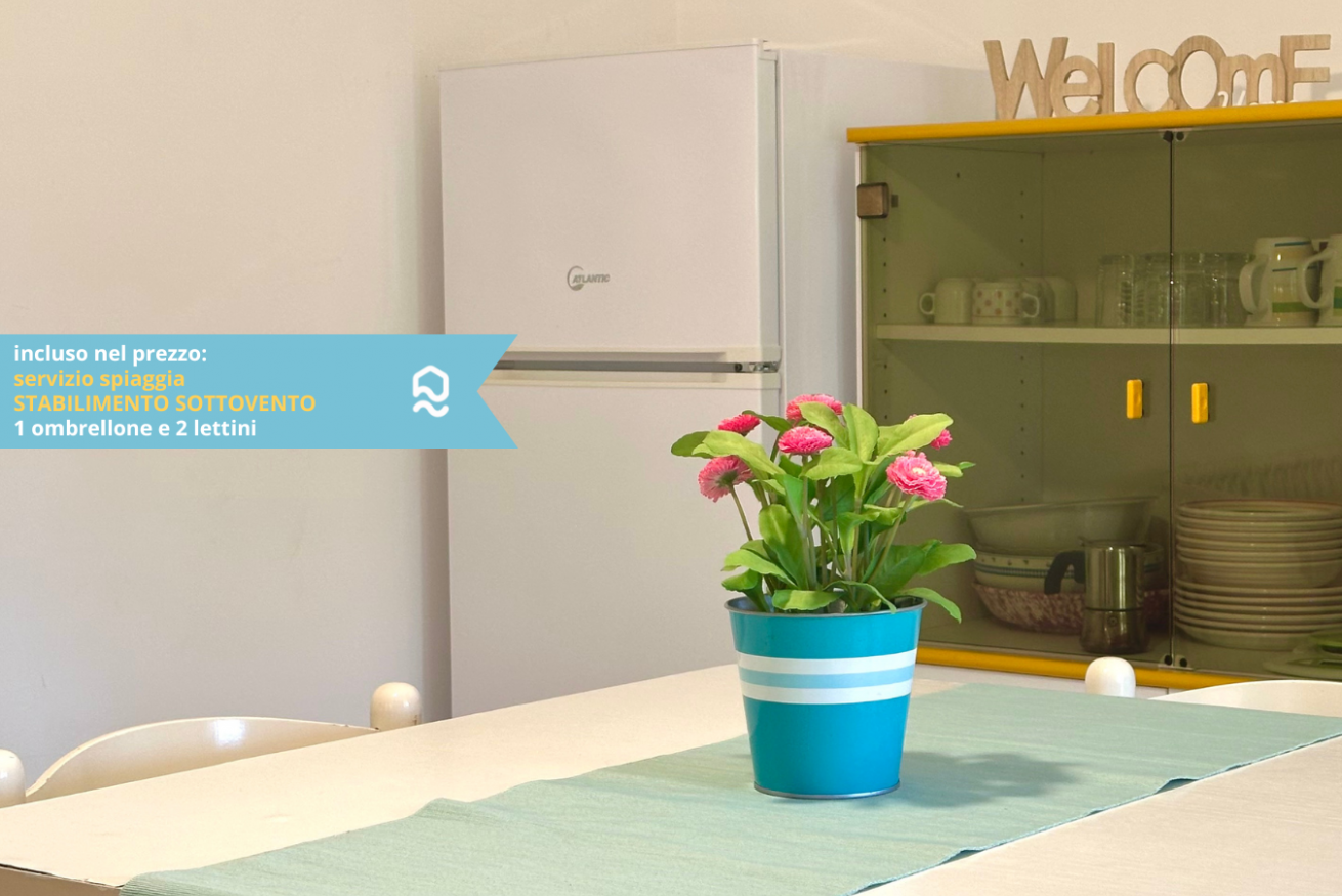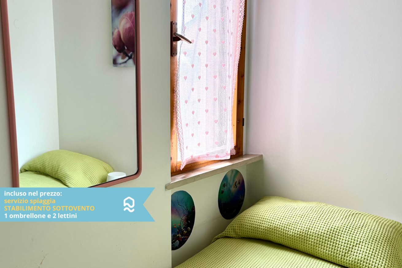 Ubicazione: in posizione tranquilla, a soli 150 metri dal mare e dalla via Litoranea. Servizio spiaggia incluso presso lo stabilimento balneare Sottovento Beach Club!