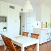 Ingresso su luminoso soggiorno con tavolo da pranzo, due chaise longue e angolo cottura attrezzato con forno a microonde e lavastoviglie - salotto con divano-letto matrimoniale - camera padronale con letto matrimoniale - seconda camera con letto a castello - bagno con box doccia e lavatrice.
