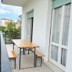 Descrizione: Appartamento al primo piano, ingresso su luminosa zona giorno con tavolo da pranzo, divano letto matrimoniale e grande terrazzo attrezzato per il pranzo - cucina accessoriata in vano distinto - ampia camera matrimoniale - seconda camera con letti a castello - bagno con box doccia. Completano la proprietà: lavatrice e posto auto riservato.