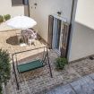 Description : completely new! Ground floor of a single semi-detached house. Large living room with double sofa bed, dining table and kitchenette - master bedroom with double bed - bathroom with shower and washing machine - large front and back garden equipped with table, chairs and swing where you can eat. Air conditioning in every room. Parking space inside the property. Animals are not allowed.