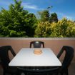 Piano d’ ingresso: ampio salone con divani, tavolo da pranzo ed angolo cottura – bagno con box doccia – terrazzo attrezzato con tavolo e sedie.