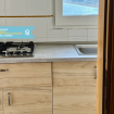 Piano d’ ingresso: soggiorno con divano letto matrimoniale ed angolo cottura.