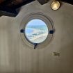 Piano d’ ingresso: soggiorno con divano letto matrimoniale ed angolo cottura con lavatrice.