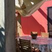 Entrance to a bright living room with sofa, dining table and air conditioning - equipped kitchen with table and chairs - bedroom with double bed and balcony - second bedroom with double bed - third bedroom with single bed - large bathroom with tub, shower and washing machine - second bathroom with shower - delightful covered terrace equipped with table and chairs.