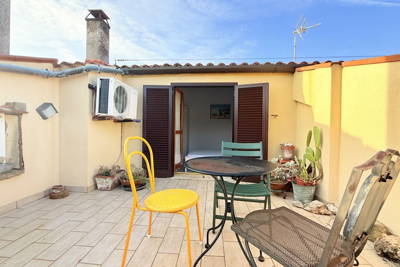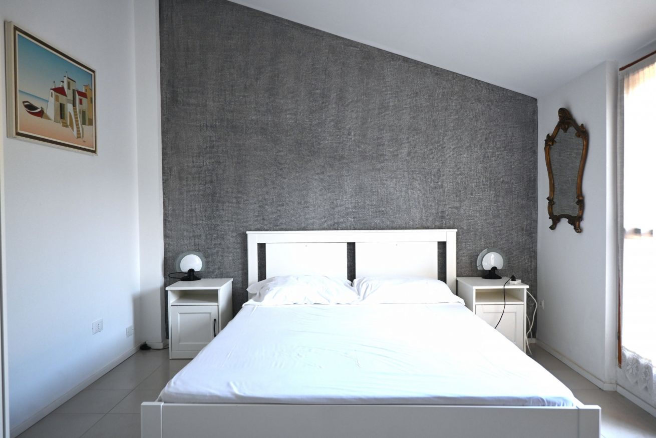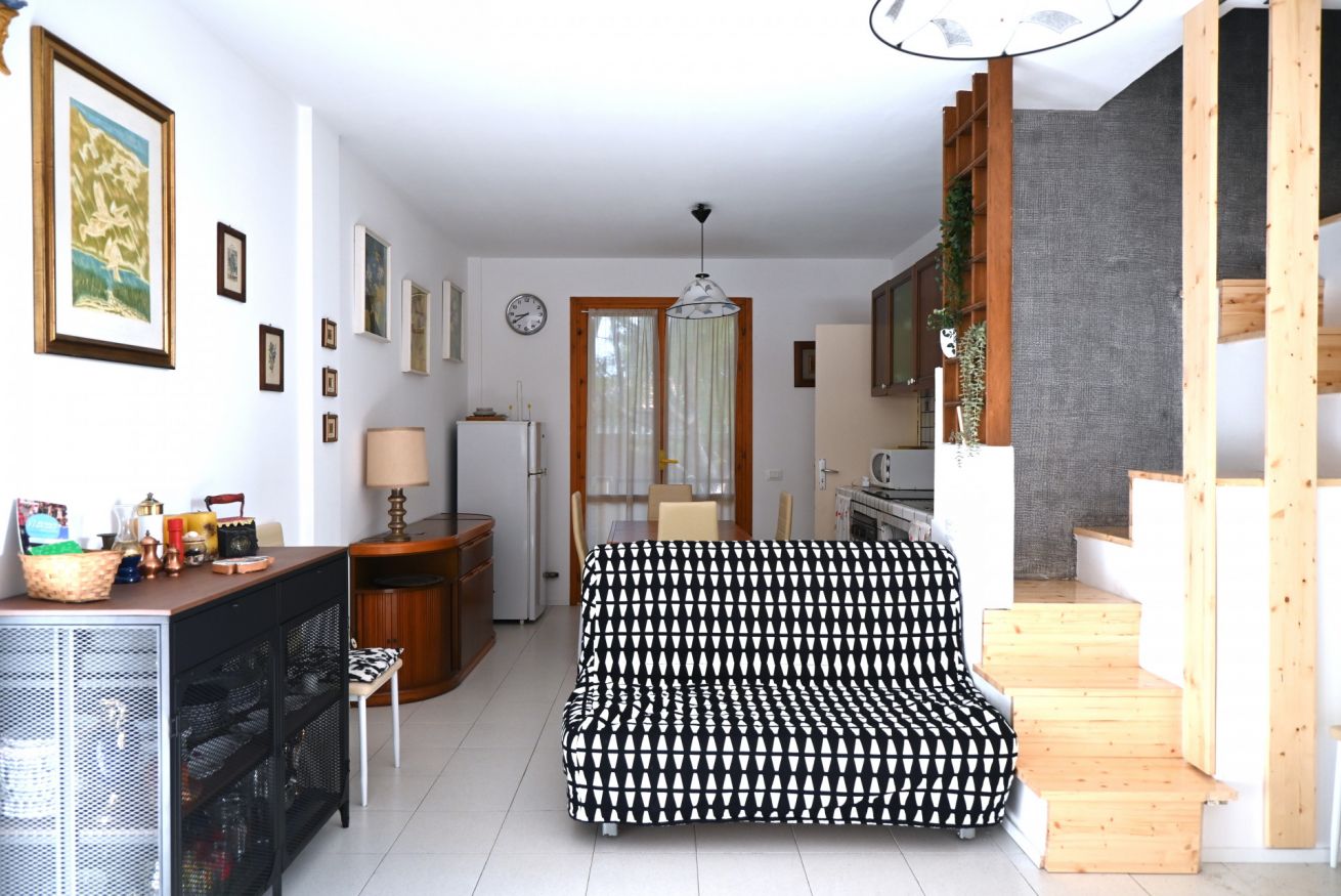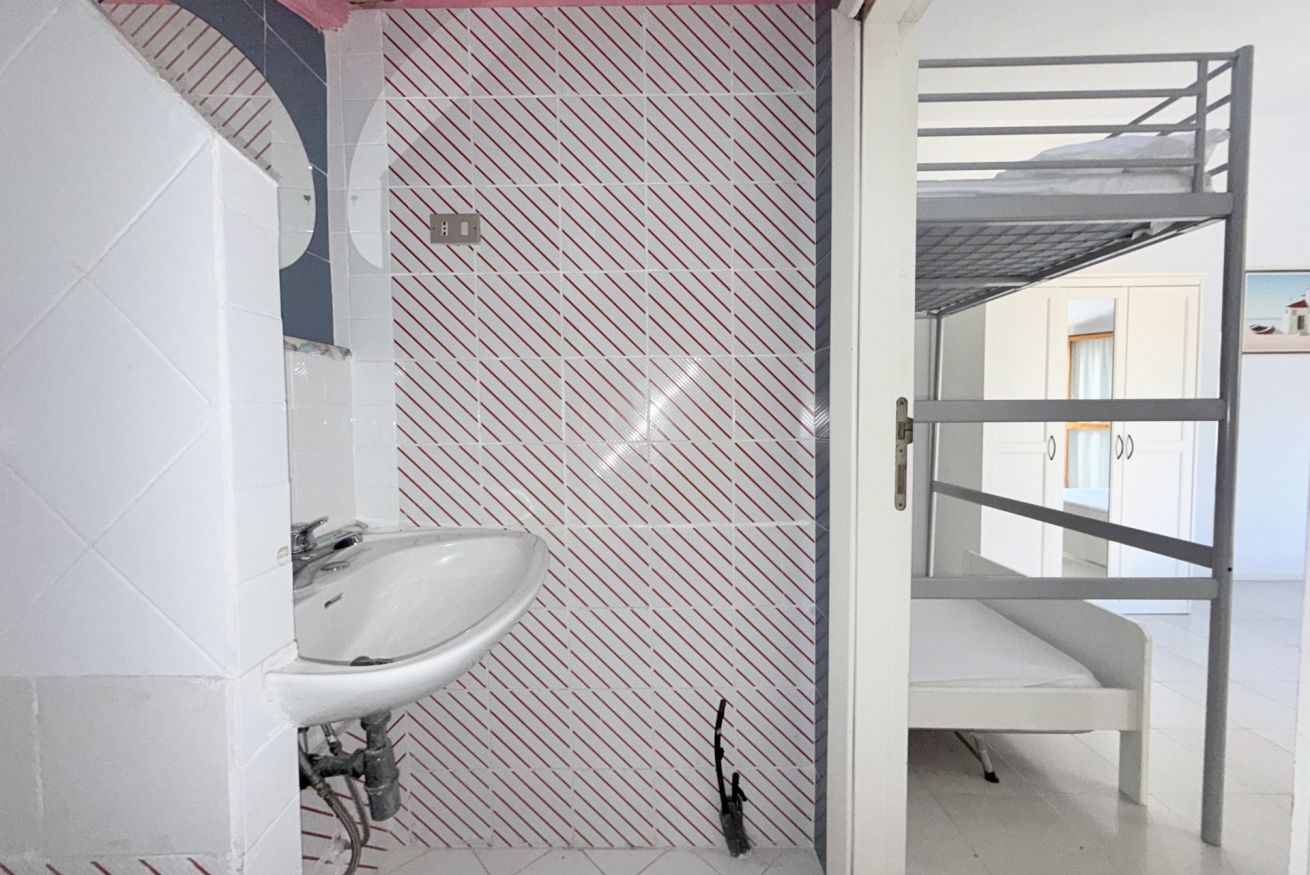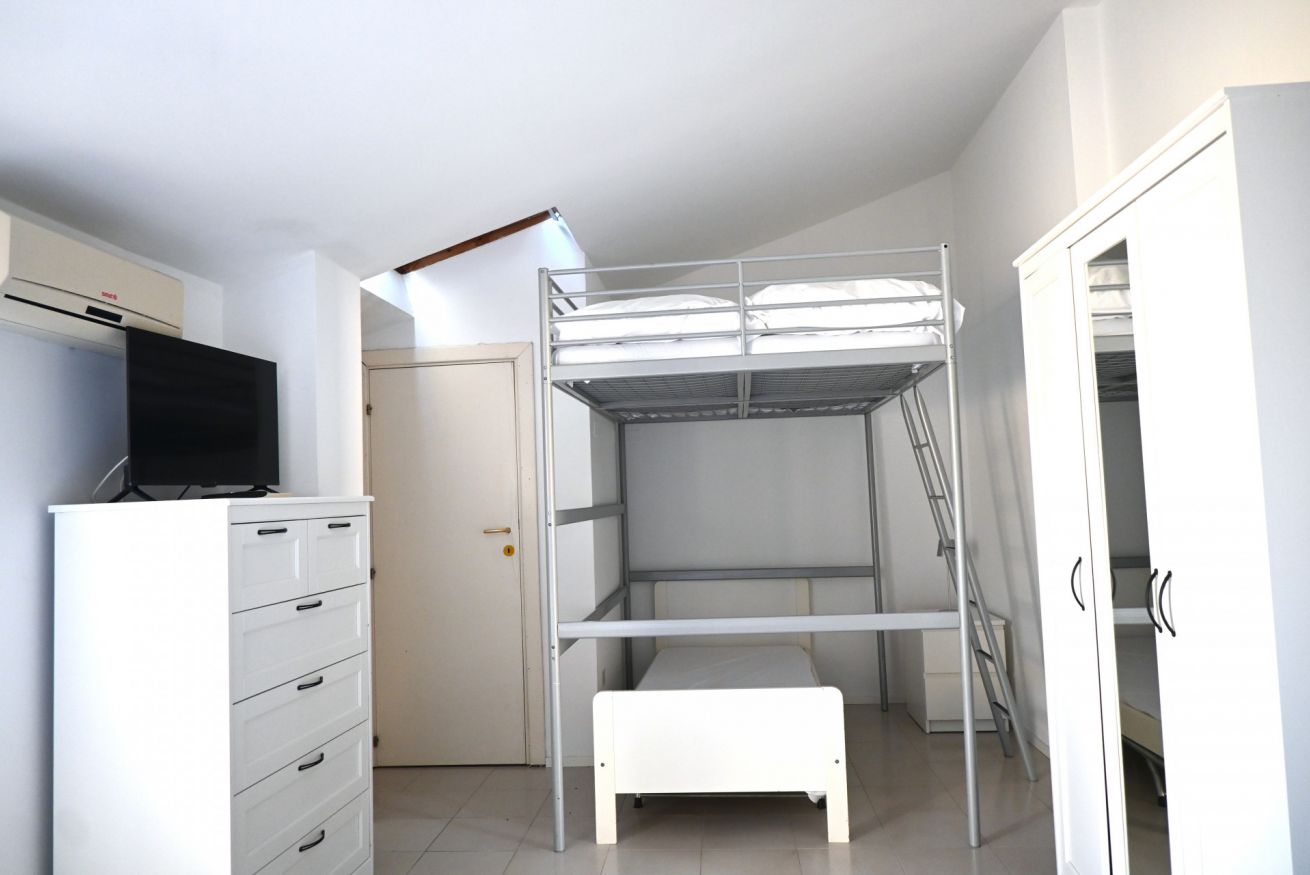 Descrizione: accogliente trilocale su due livelli al terzo ed ultimo piano. Ingresso su soggiorno con divano, tavolo da pranzo, angolo cottura con lavatrice e comodo balcone attrezzato - camera con letto matrimoniale con bagno en suite dotato di doccia. Piano superiore: accogliente mansarda con letto matrimoniale, letto a castello con matrimoniale e singolo, meraviglioso terrazzo con vista mare, tv e aria condizionata- bagno di servizio.