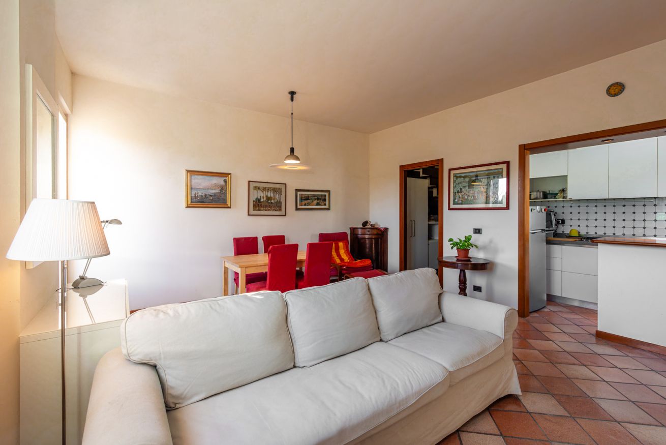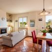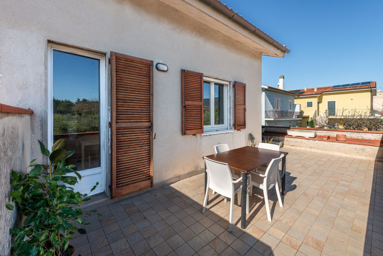 Descrizione: Luminoso appartamento con ingresso al primo piano su soggiorno con divano e tavolo da pranzo , angolo cottura e accesso ad un ampio terrazzo attrezzato con tavolo e sedie dove poter mangiare - camera matrimoniale - bagno completo con doccia.