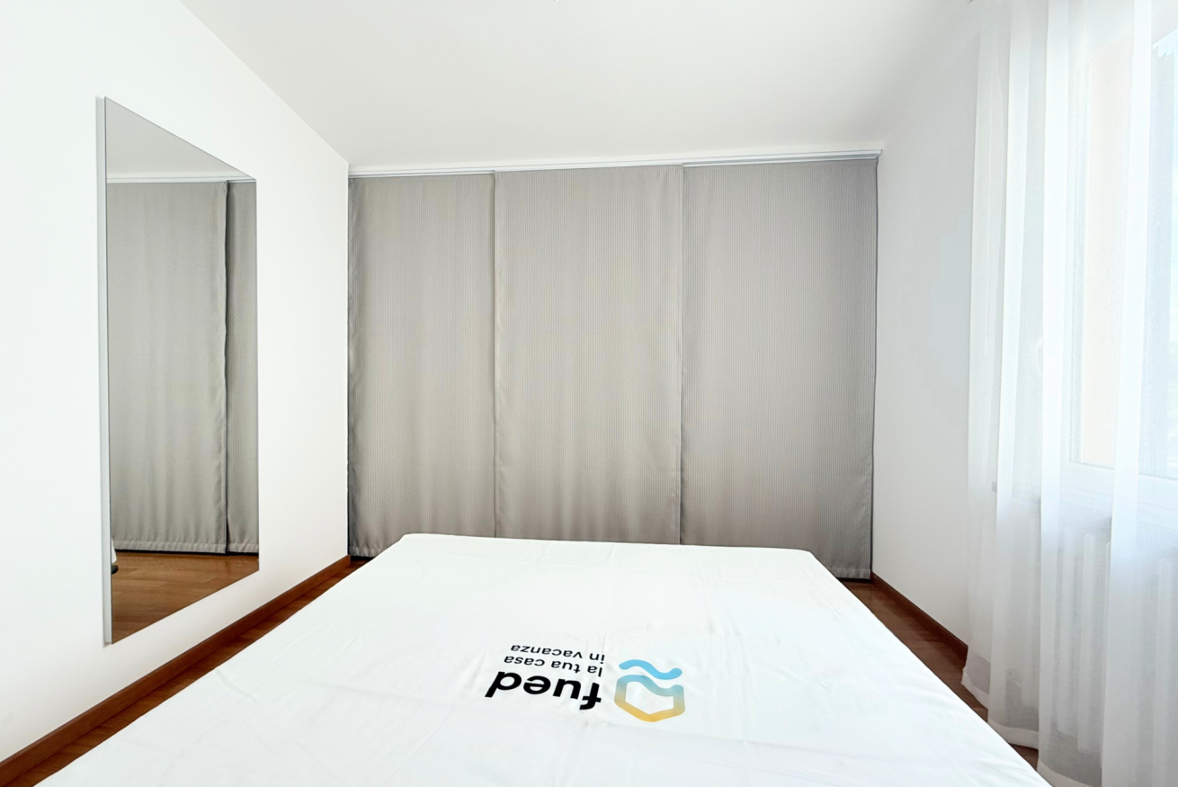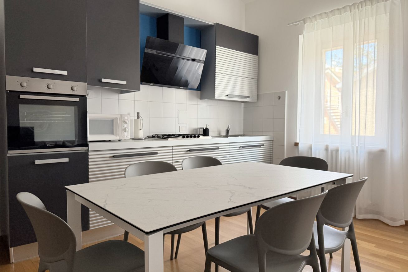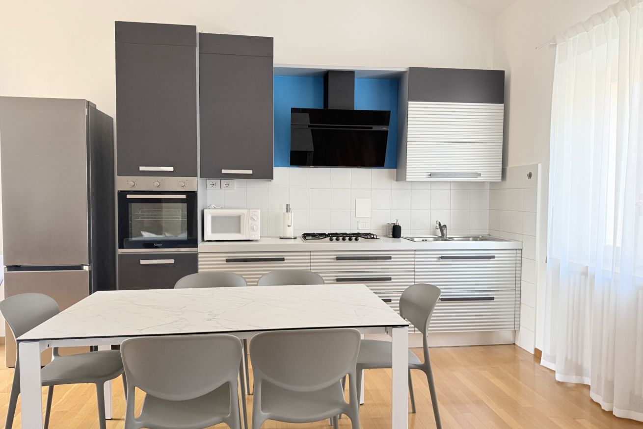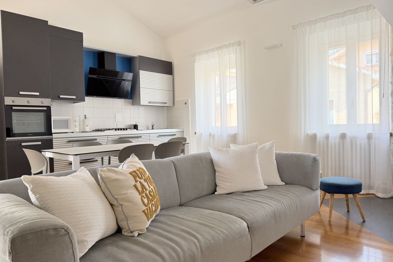 Descrizione: nuovo appartamento ristrutturato al primo piano. Ampio soggiorno con divano-letto matrimoniale, tavolo da pranzo e cucina attrezzata nuova.
