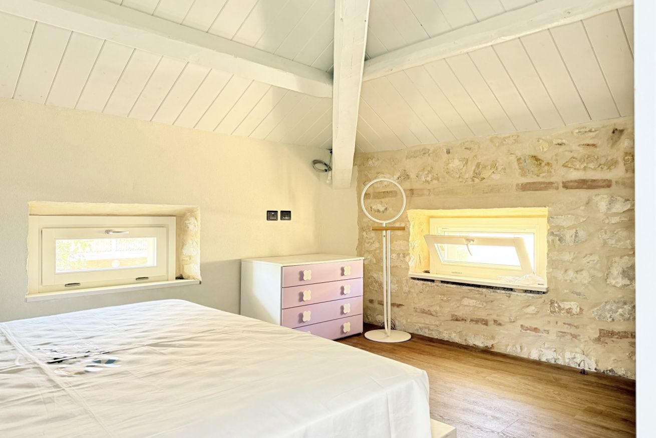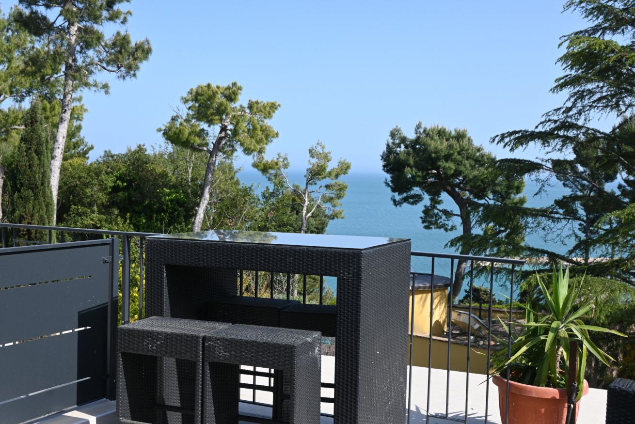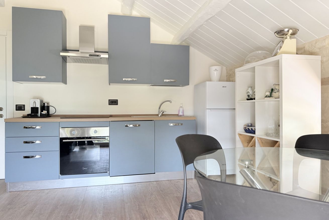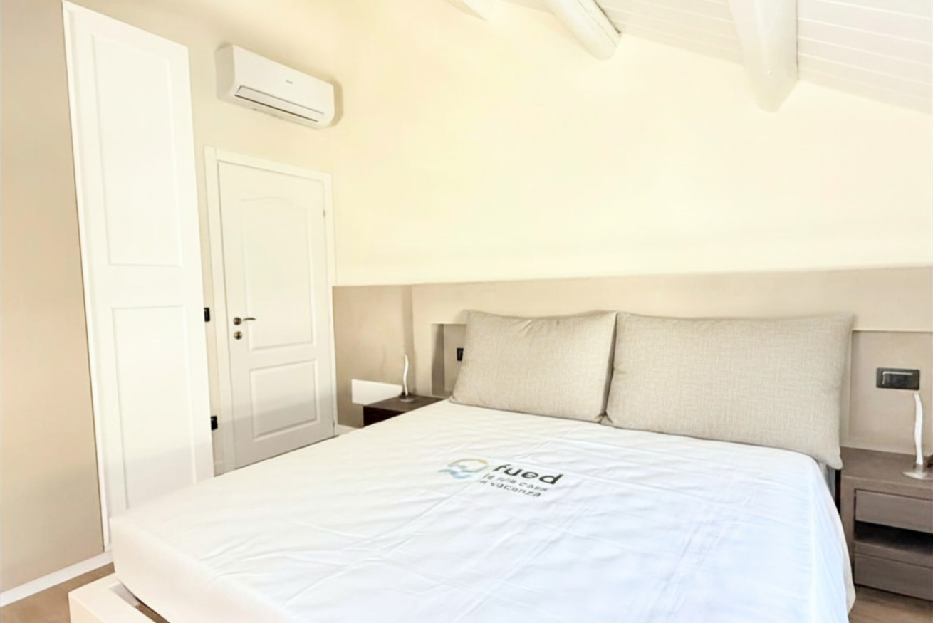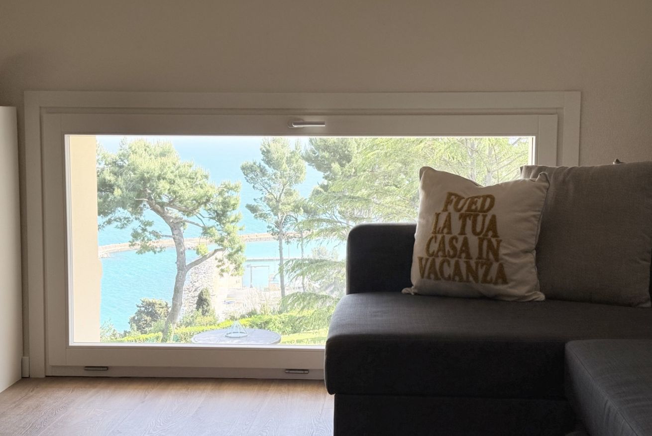 Descrizione: ingresso al secondo piano su soggiorno con divano letto matrimoniale e angolo cottura con lavastoviglie – camera matrimoniale - bagno completo con box doccia e lavatrice – ampio terrazzo vista mare attrezzato con tavolo e sedie, in comune con l'appartamento affianco (ogni appartamento ha destinata una sua area di pertinenza).