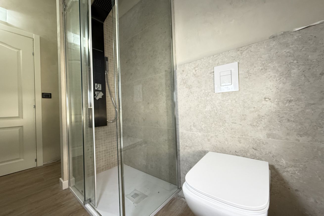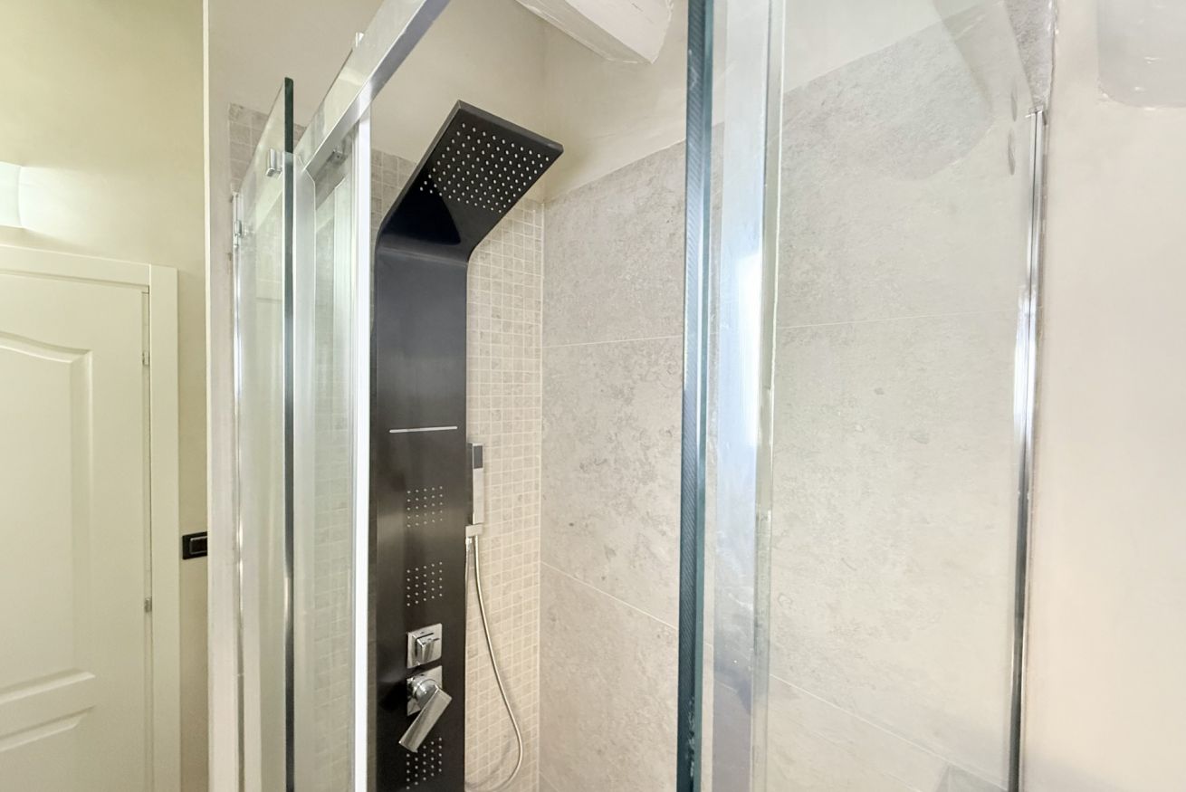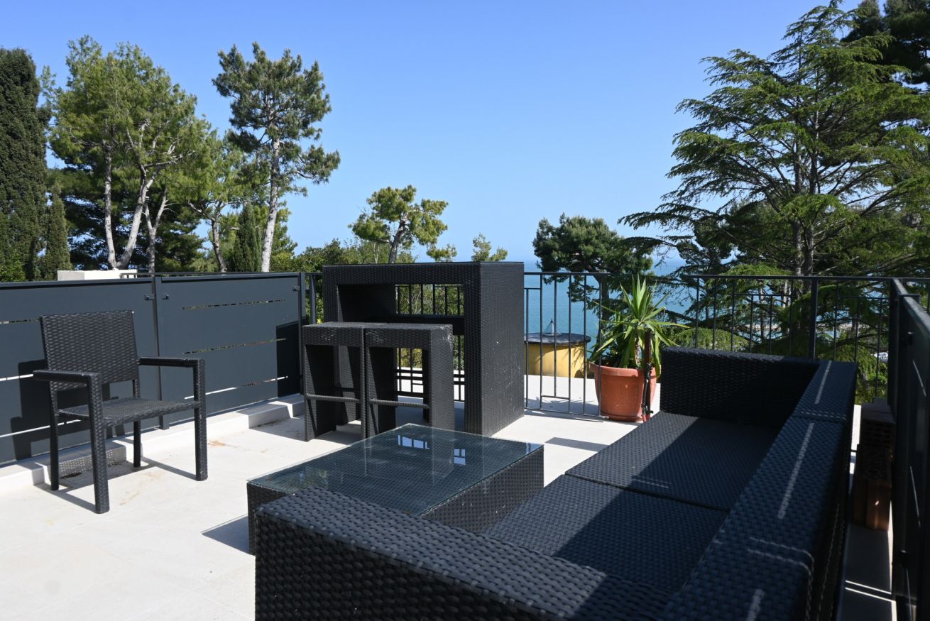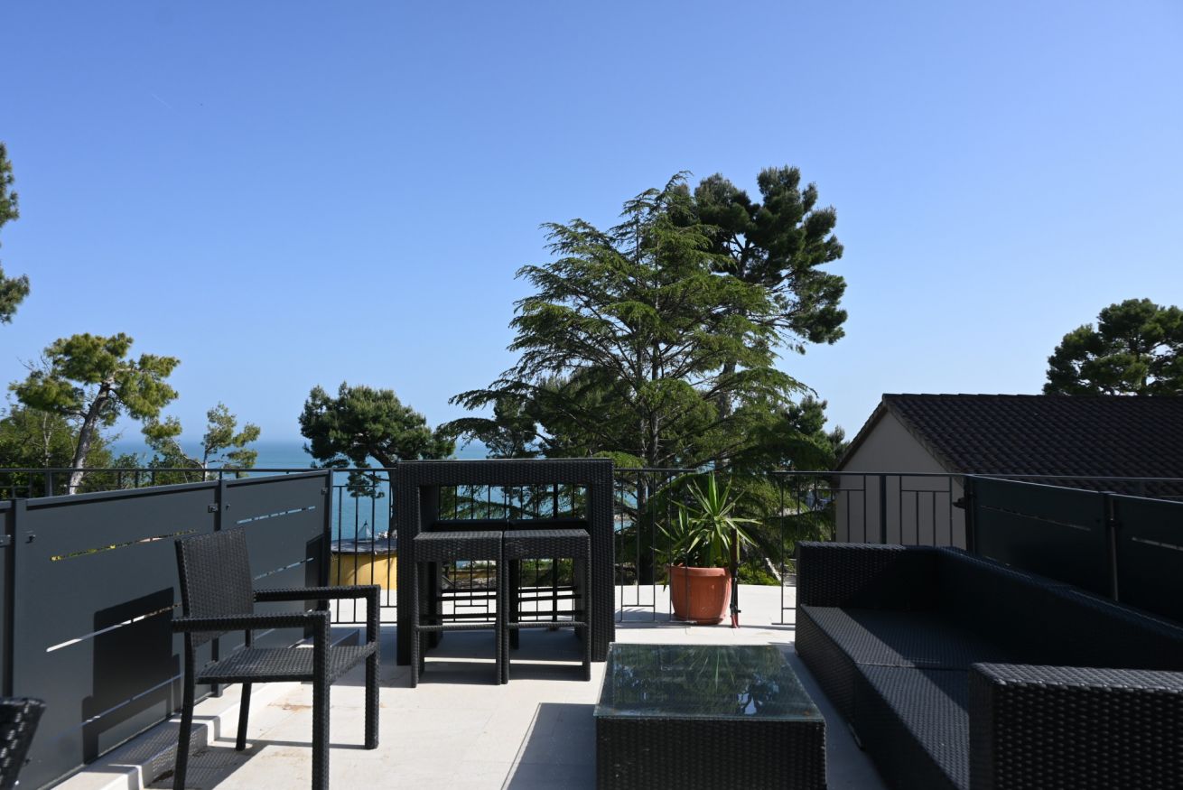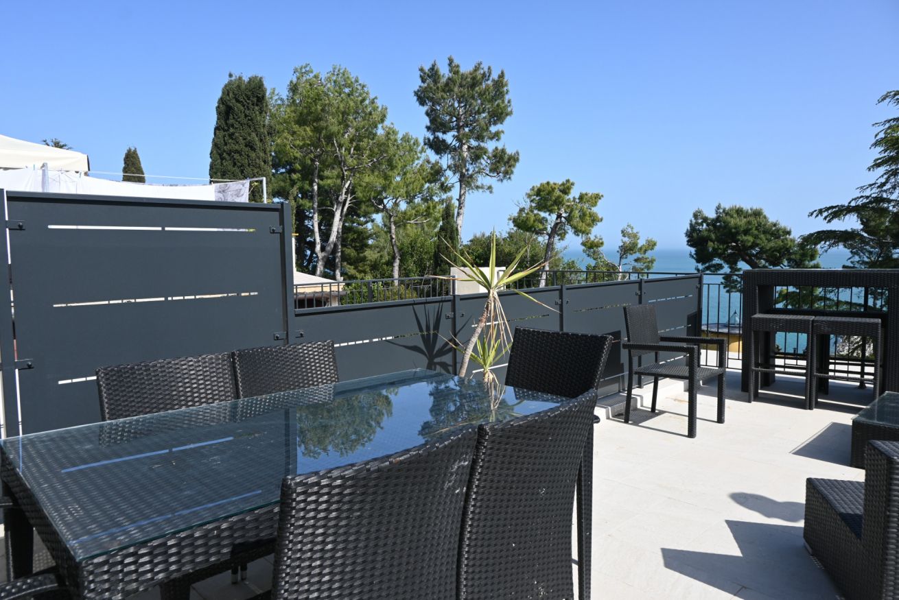 Descrizione: ingresso al secondo piano su soggiorno con divano letto matrimoniale e angolo cottura con lavastoviglie – camera matrimoniale - bagno completo con box doccia e lavatrice – ampio terrazzo vista mare attrezzato con tavolo e sedie, in comune con l'appartamento affianco (ogni appartamento ha destinata una sua area di pertinenza).