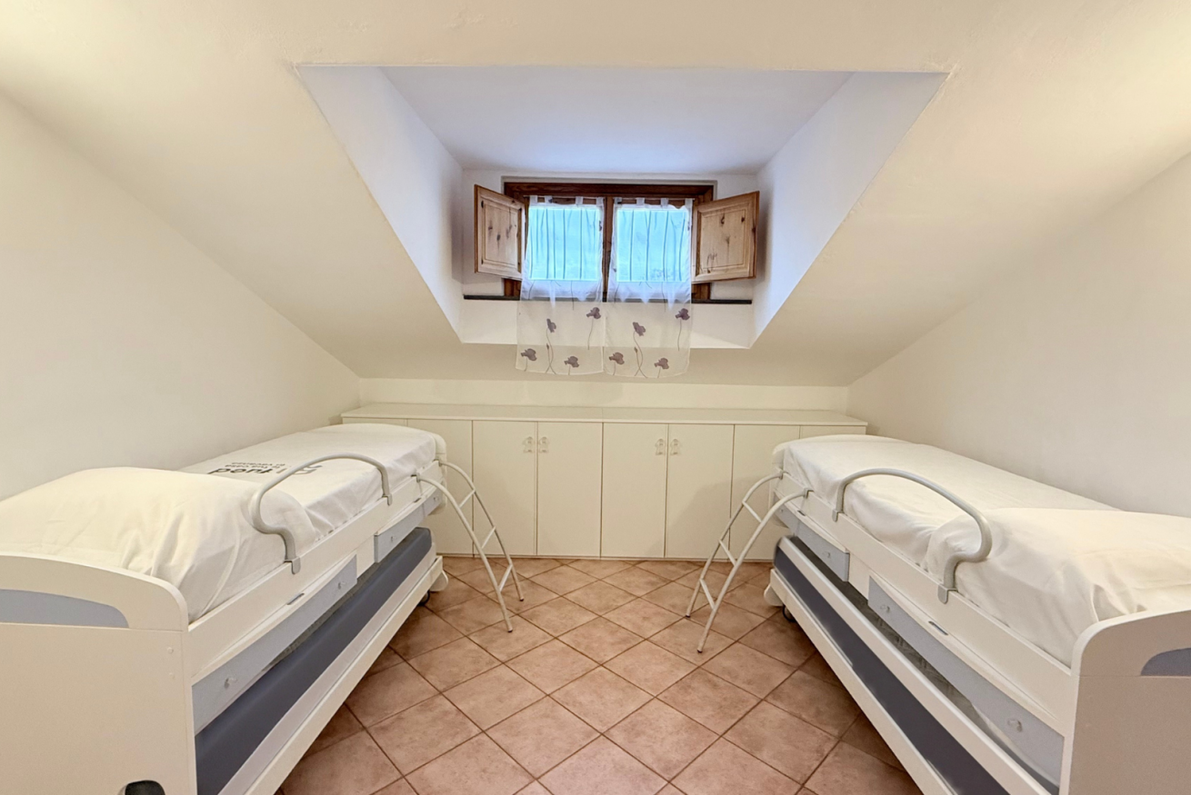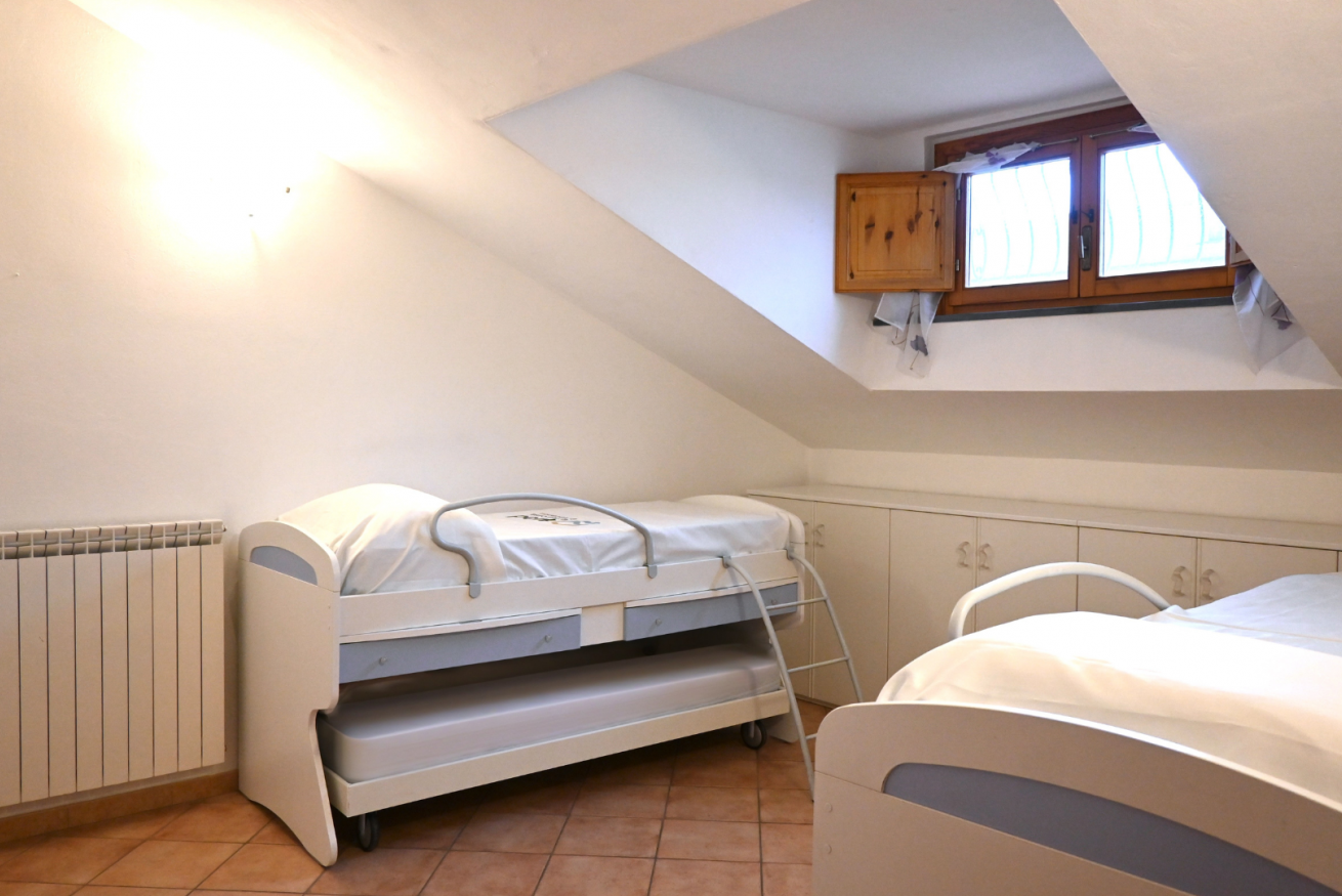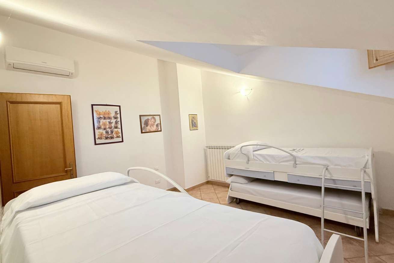Camera padronale con letto matrimoniale ed accesso diretto al terrazzo - seconda camera con 2 letti singoli ( più altri due letti singoli estraibili all'occorrenza) ampio bagno completo di vasca e doccia - ripostiglio con lavatrice.
