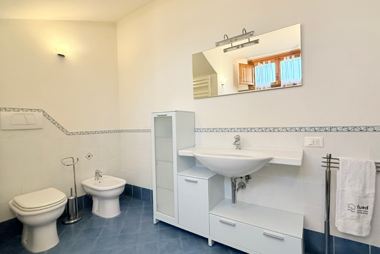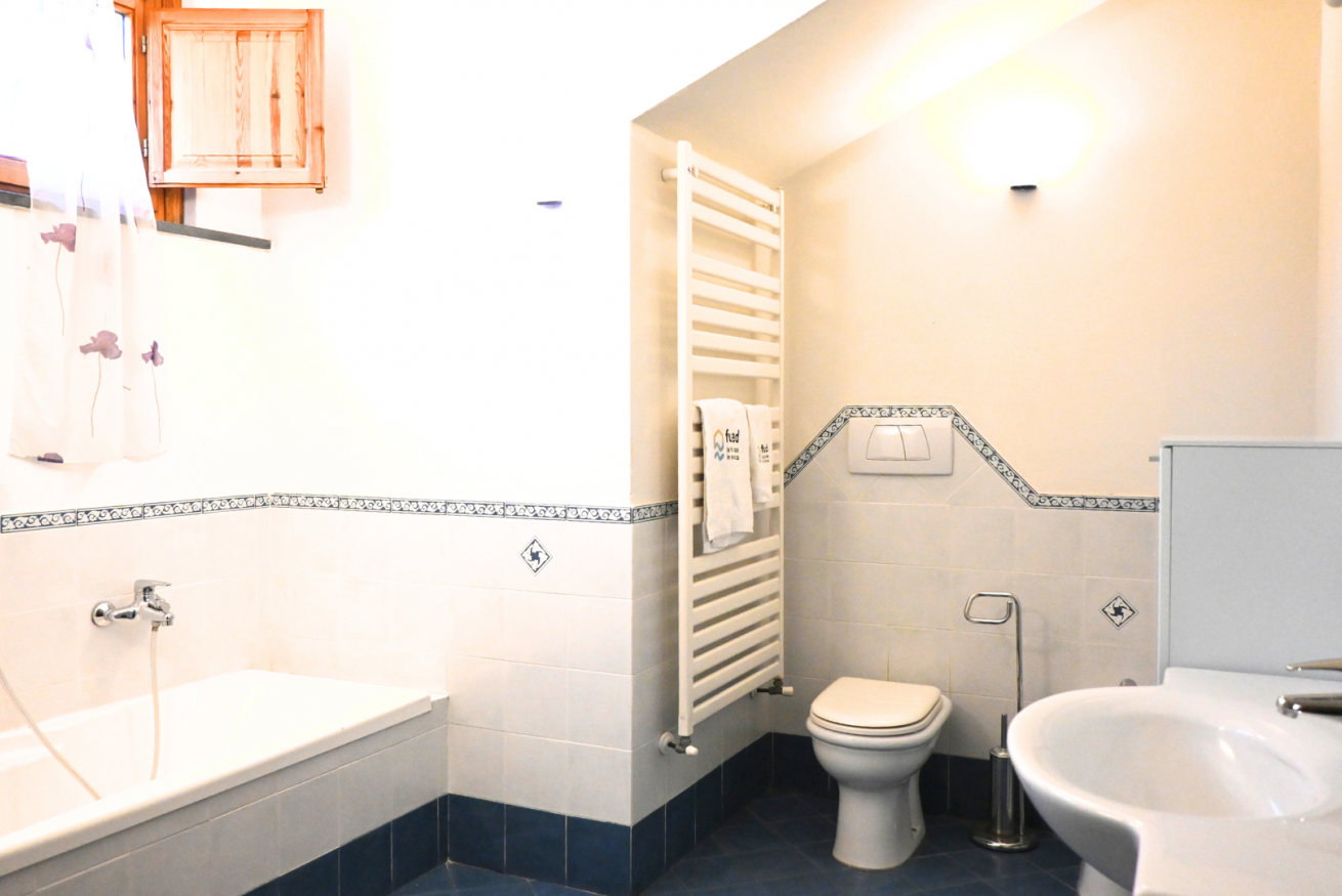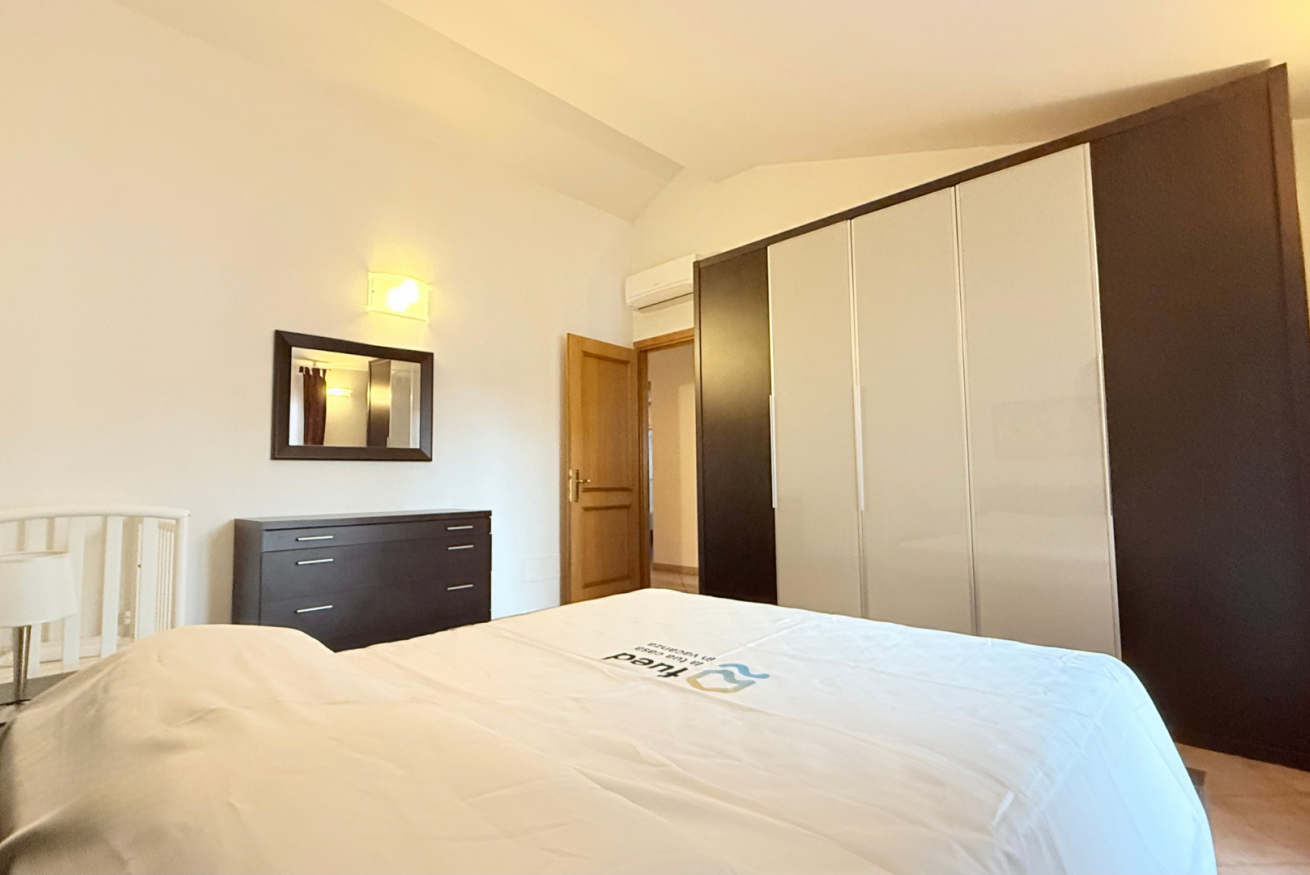 Camera padronale con letto matrimoniale ed accesso diretto al terrazzo - seconda camera con 2 letti singoli ( più altri due letti singoli estraibili all'occorrenza) ampio bagno completo di vasca e doccia - ripostiglio con lavatrice.