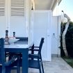 Descrizione: ingresso al piano terra. Zona giorno con divano - cucina completa con lavastoviglie e zona pranzo - accesso al giardino recintato, attrezzato con tavolo e sedie dove poter mangiare - camera da letto con letto matrimoniale - seconda camera con letto alla francese - bagno con box doccia. Aria condizionata in tutte le stanze. Lavatrice. Posto auto privato all'interno della corte condominiale.