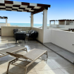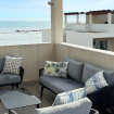 Descrizione: appartamento al primo piano. Ingresso su soggiorno con angolo cottura dotato di piano a induzione e lavastoviglie, tavolo da pranzo e divano letto matrimoniale - solarium a tetto di 50mq con veranda, attrezzato con tavolo e sedie dove poter mangiare, alla quale si accede con scala dal balcone del soggiorno - camera con letto matrimoniale e letto singolo - bagno con box doccia. Aria condizionata in tutte le stanze. Lavatrice. Posto auto privato all'interno della corte condominiale.