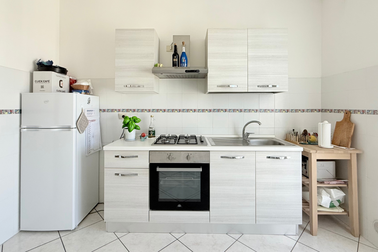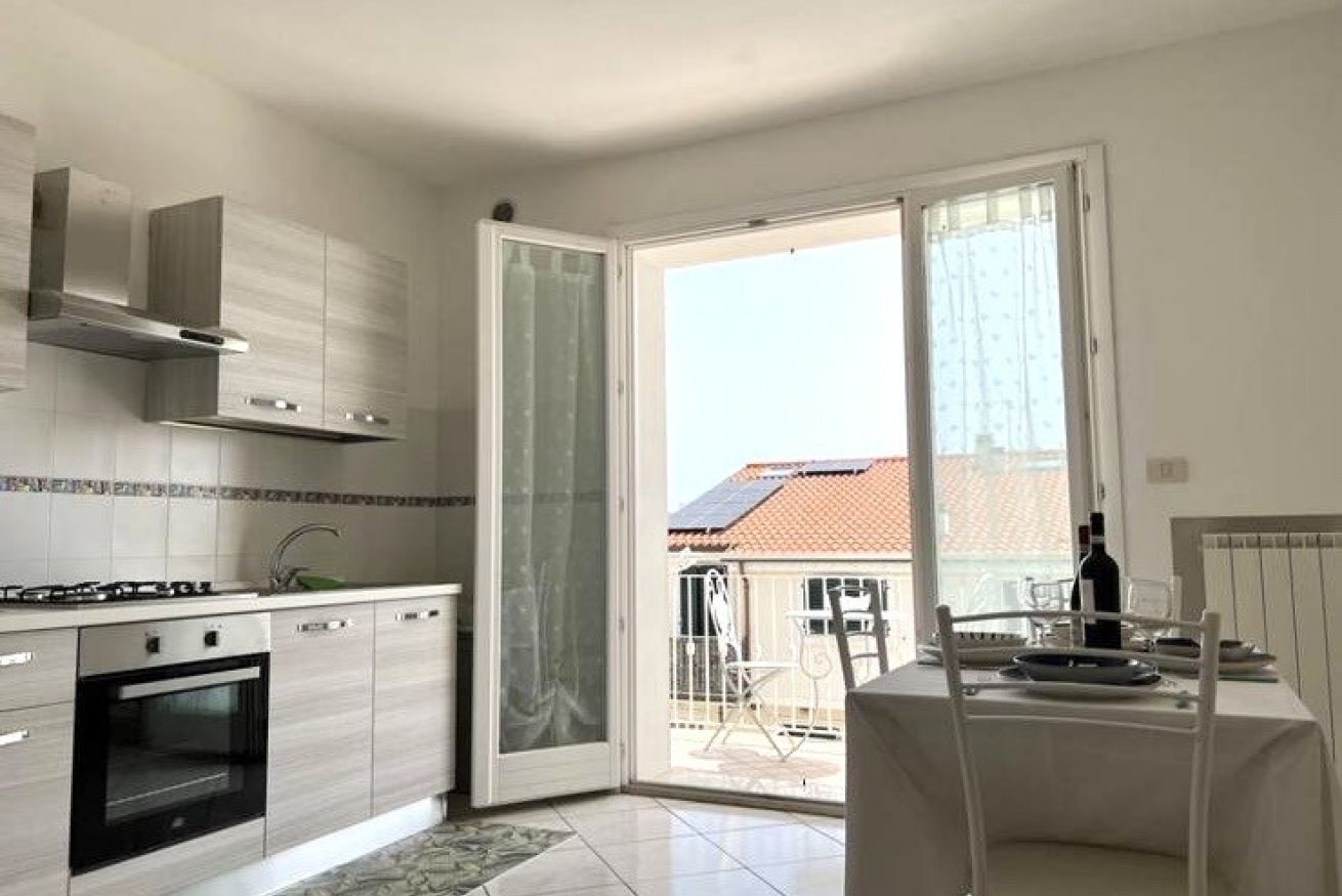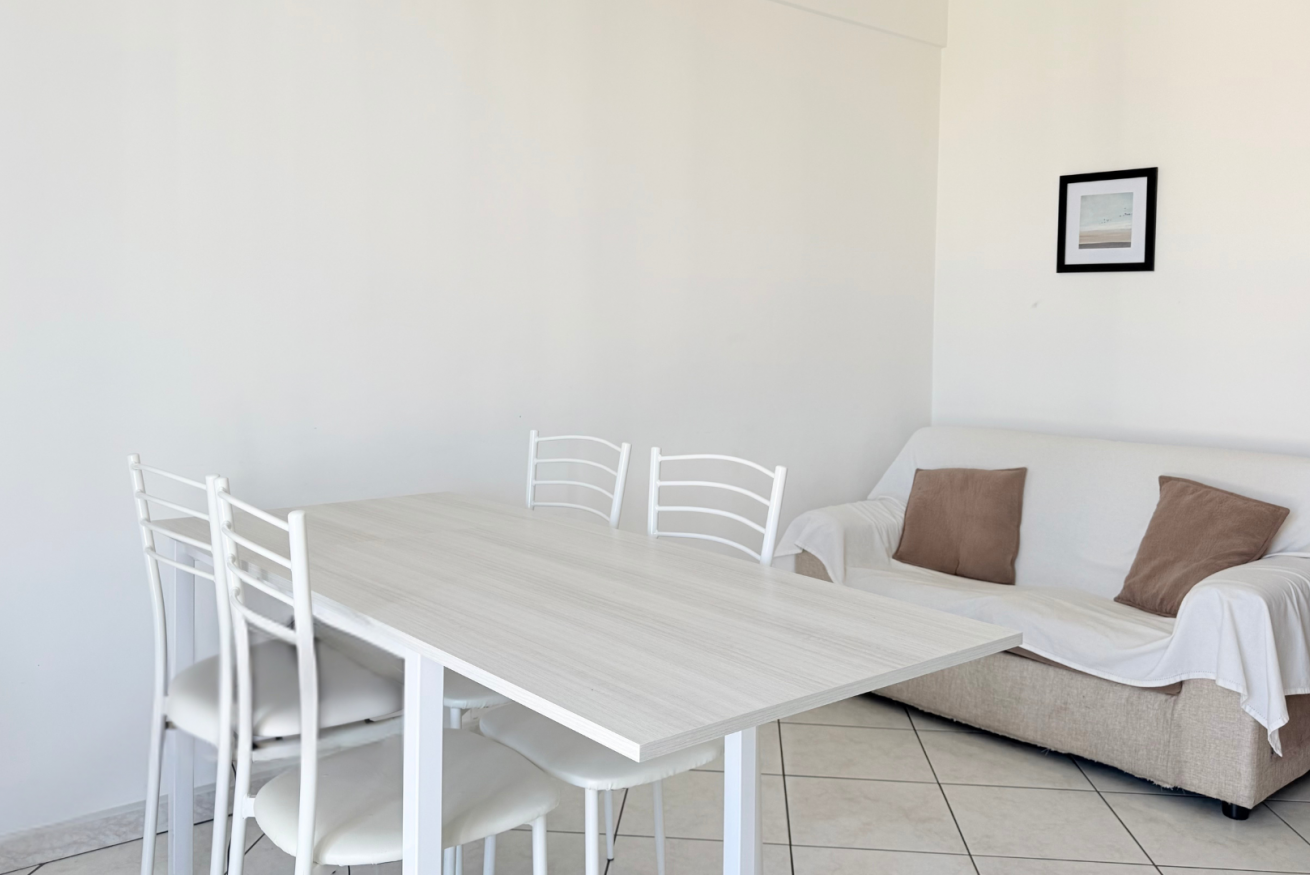 Descrizione: moderno ed accogliente trilocale con nuovi arredi al primo piano. Ingresso su luminoso soggiorno con divano, tavolo da pranzo, angolo cottura e balcone attrezzato - camera con letto matrimoniale - seconda camera con letto a castello - bagno con box doccia e lavatrice - secondo bagno con vasca idromassaggio.