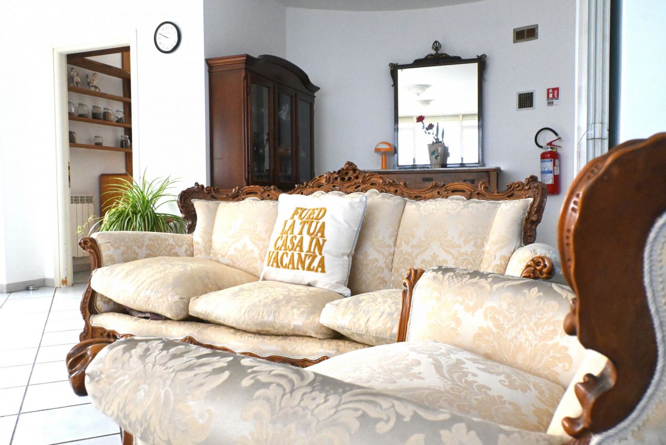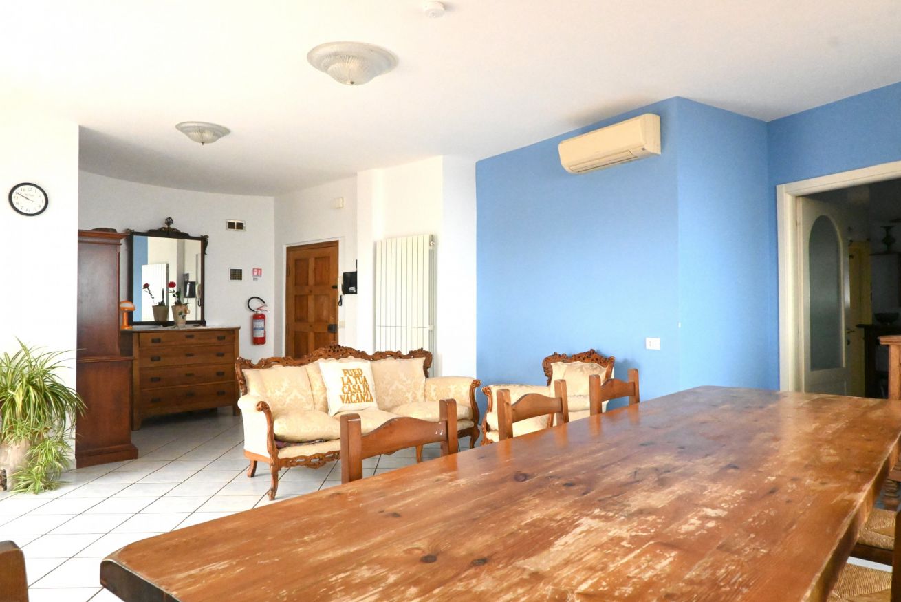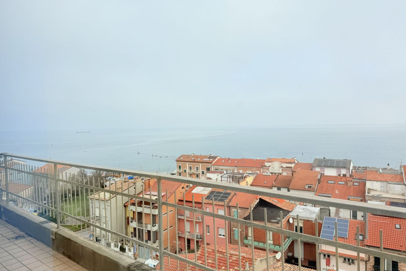 Descrizione: luminoso e spazioso attico al settimo ed ultimo piano con ascensore (arriva fino al sesto piano). L'appartamento è caratterizzato da ampi spazi interni, aria condizionata in ogni stanza e da un incantevole terrazza con un'esclusiva vista panoramica sul mare e sul litorale marchigiano.