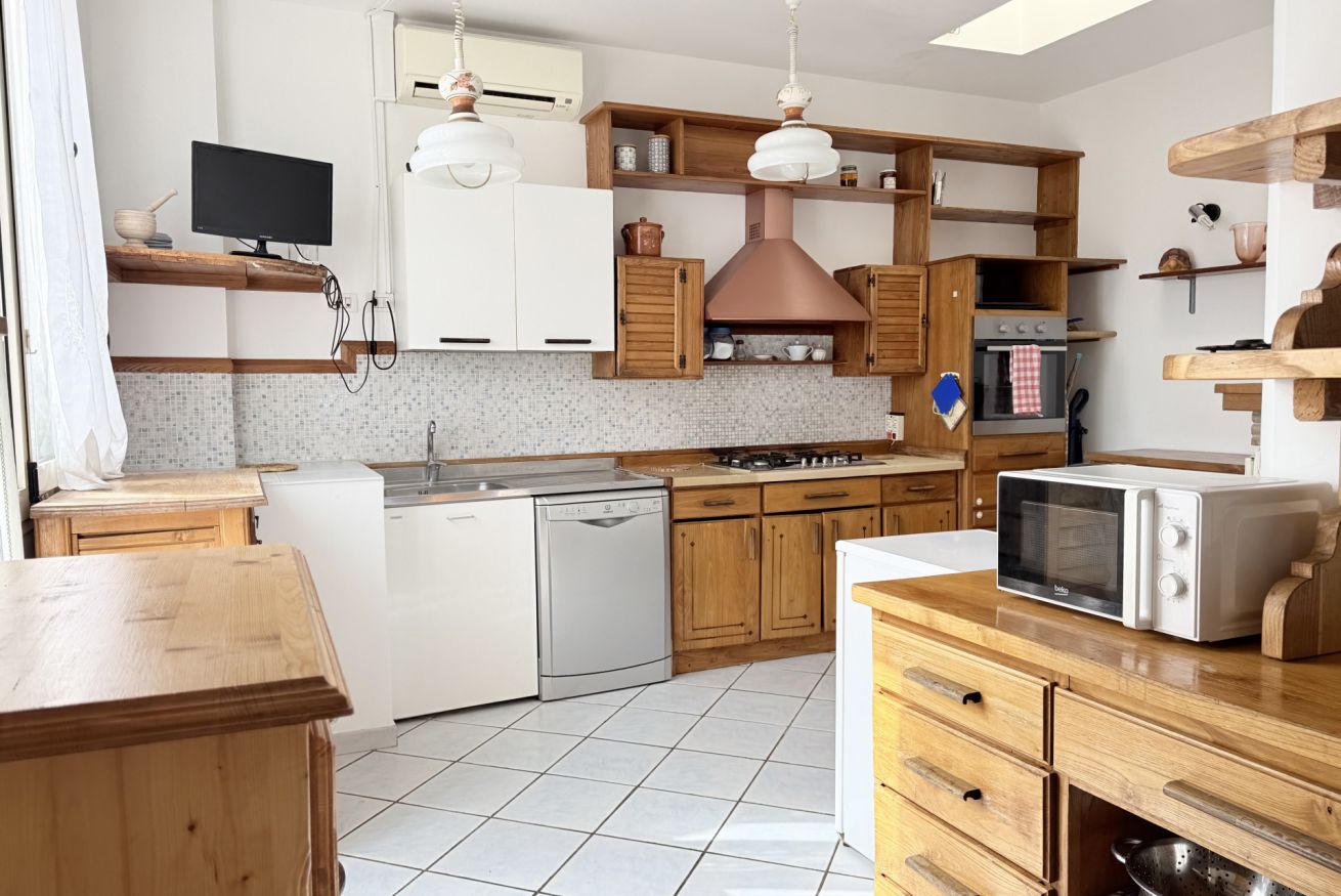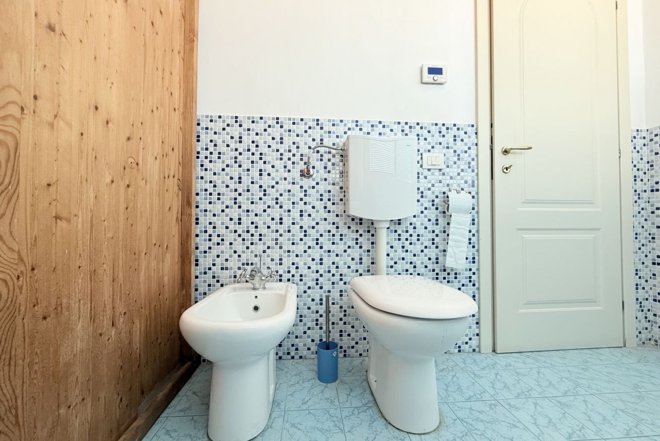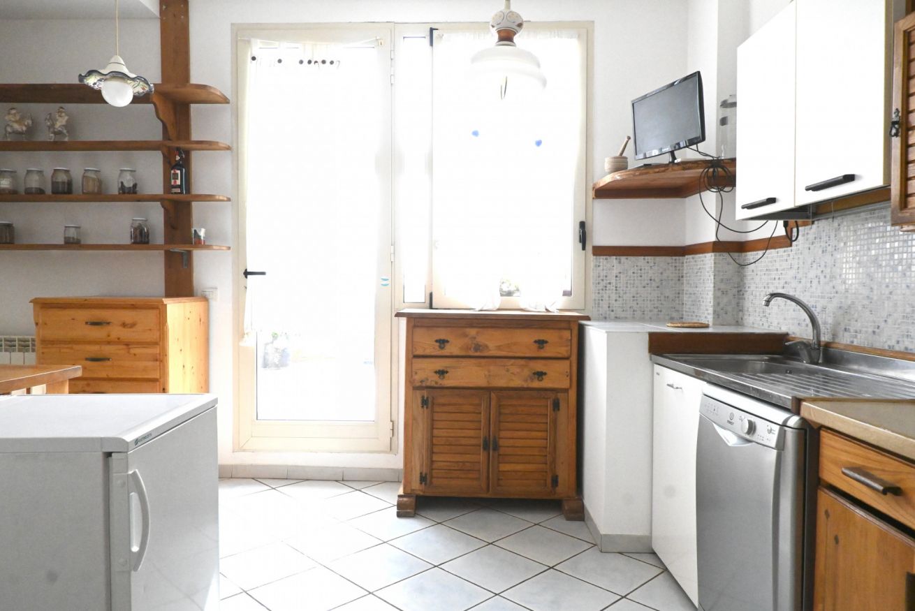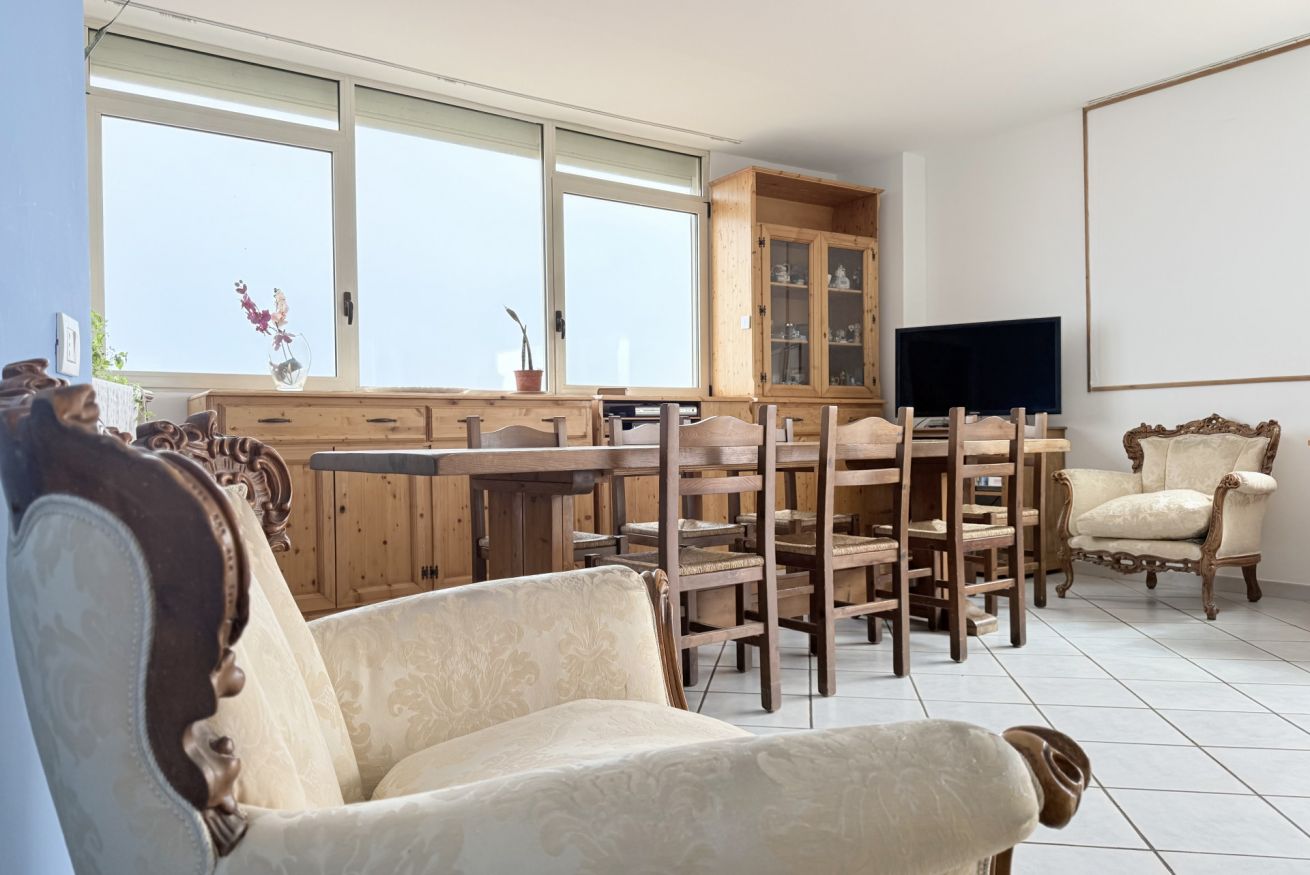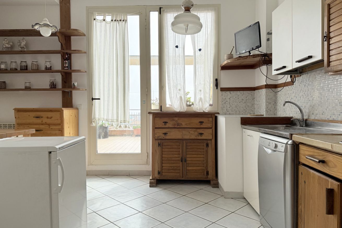 Ingresso sul soggiorno dotato di divani e di un grande tavolo da pranzo - cucina separata con lavastoviglie - camera con letto matrimoniale - seconda camera con letto matrimoniale - bagno con box doccia e lavatrice - secondo bagno completo con vasca - stupenda terrazza ad angolo, attrezzata con tavolo, sedie e lavandino. Animali non ammessi.