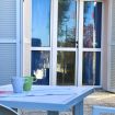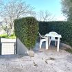 Soggiorno con divano-letto matrimoniale, angolo cottura, bagno con doccia - camera padronale matrimoniale con mini-frigo, aria condizionata e bagno con box doccia. Giardino attrezzato con tavolo e sedie dove poter mangiare.