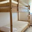 Piano superiore: camera matrimoniale con terrazzino, seconda camera con letto a castello, bagno con doccia.