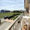 Ingresso su luminoso soggiorno con divano, tavolo da pranzo e angolo cottura - balcone vista mare - spaziosa camera con letto matrimoniale con terrazzino - seconda camera con due letti singoli - bagno completo con box doccia - grande cortile condominiale.