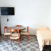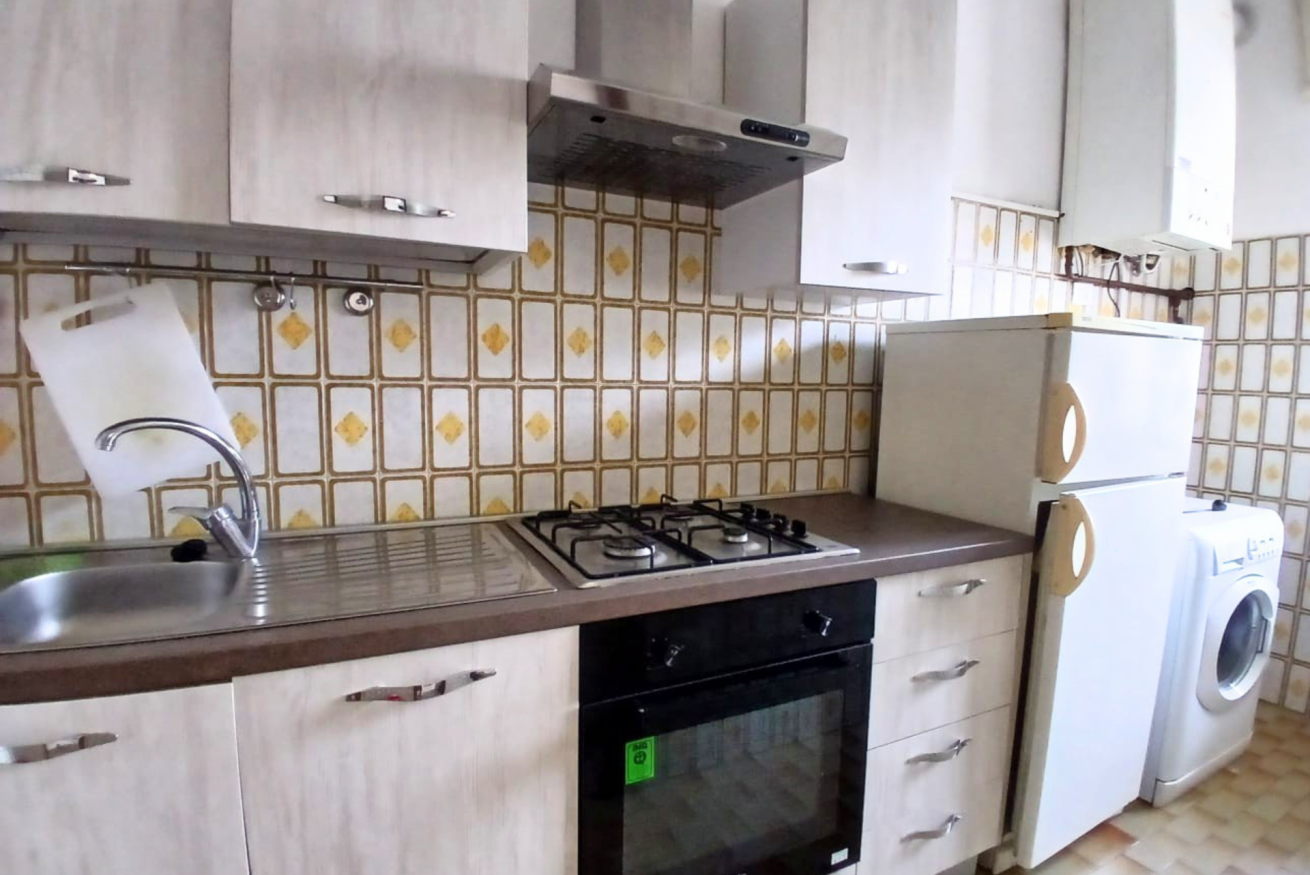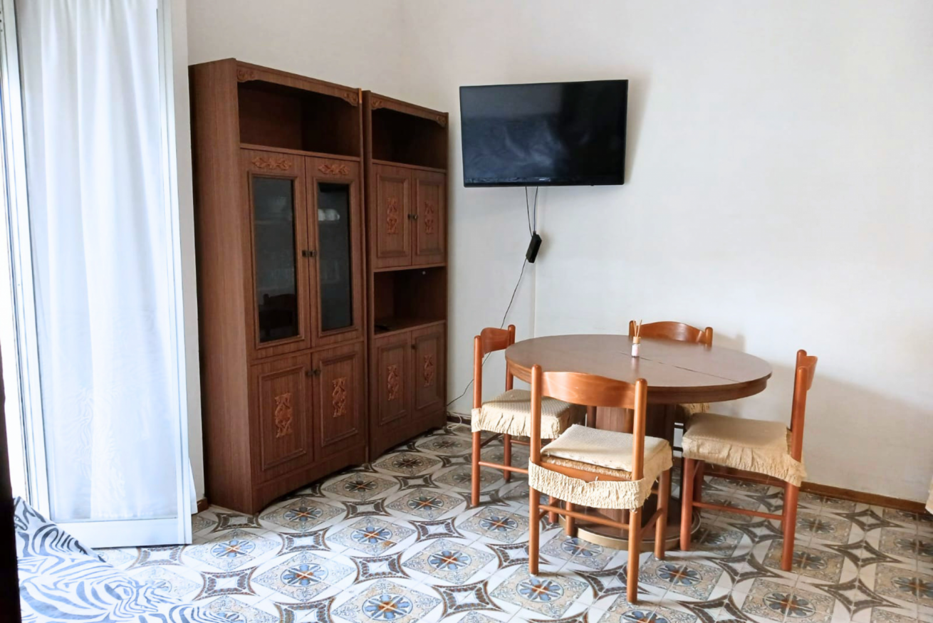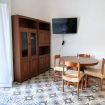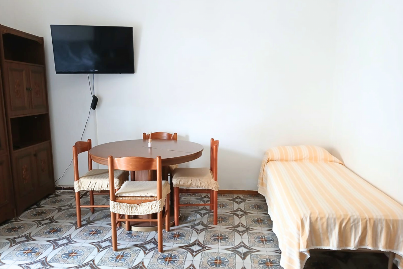 Ingresso su soggiorno con divano letto singolo, tv, tavolo da pranzo e balcone attrezzato - cucina separata- camera con letto matrimoniale, letto singolo e balcone - nuovo bagno completo con box doccia.