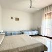 Soggiorno con divano letto matrimoniale e tavolo da pranzo - cucinino - camera padronale con letto matrimoniale e due letti singoli - seconda camera con letto matrimoniale - bagno con vasca e lavatrice.
