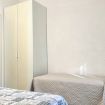 Descrizione: trilocale al piano terra. Soggiorno con divano letto singolo e tavolo da pranzo - cucina - prima camera con letto matrimoniale e un letto singolo - seconda camera con letto a castello - bagno con box doccia. Lavatrice in area esterna.