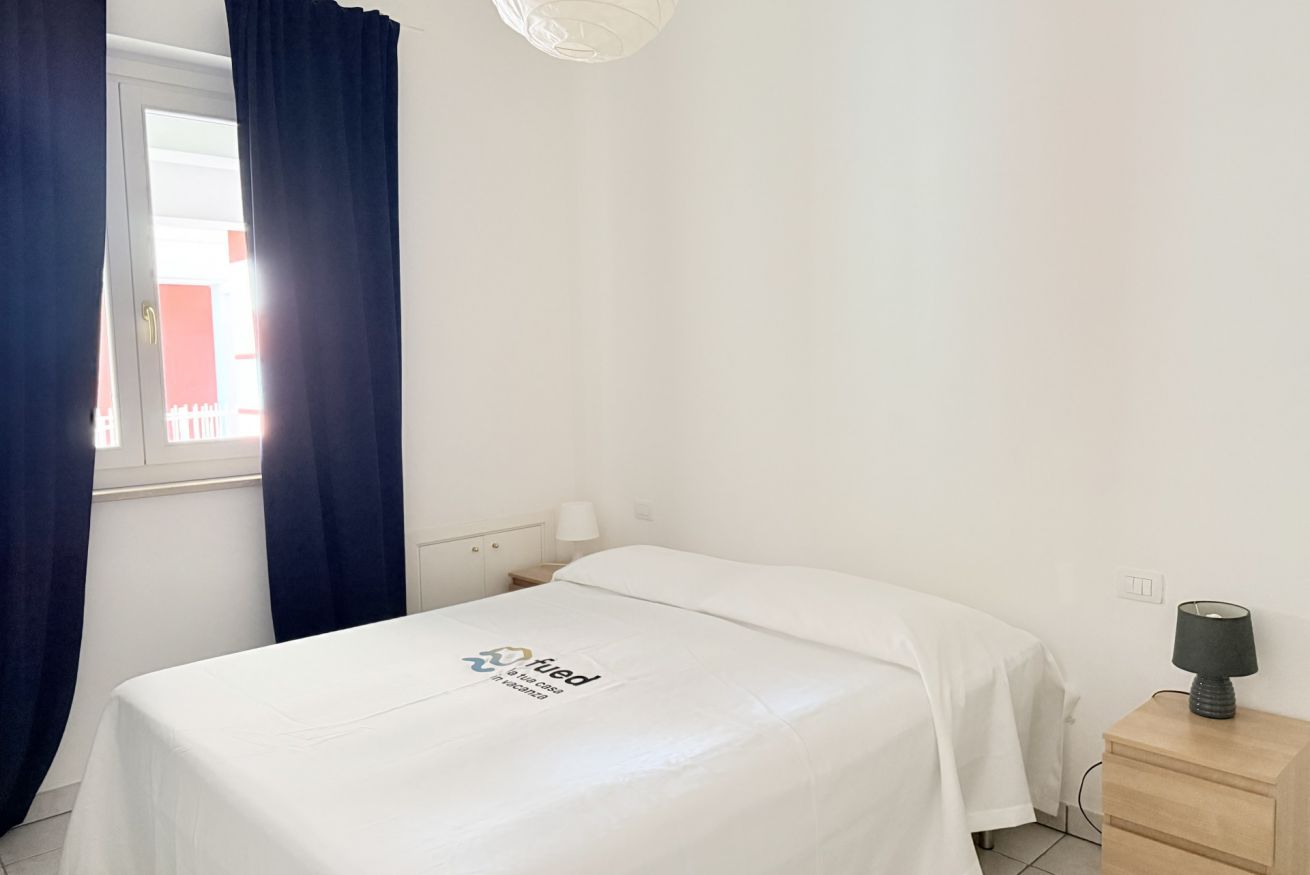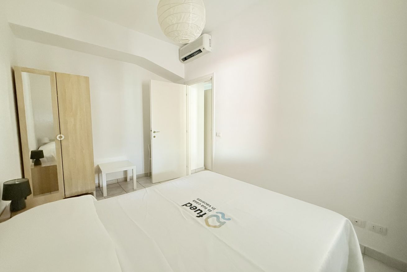 Descrizione: completamente nuovo - ampio soggiorno con angolo cottura, tavolo da pranzo e divano-letto matrimoniale – camera padronale con letto matrimoniale – cameretta con letto singolo – bagno con box doccia e lavatrice – terrazzo con vista panoramica attrezzato con tavolo e sedie dove poter mangiare – posto auto all’ interno del condominio. Aria condizionata in ogni stanza.