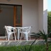 Descrizione: Piano terra. Ampio soggiorno con divano-letto matrimoniale – cucina separata – camera padronale con letto matrimoniale – cameretta con due letti singoli – bagno con doccia e lavatrice – ampio giardino completamente privato attrezzato con ombrellone, tavolo e sedie – garage privato.