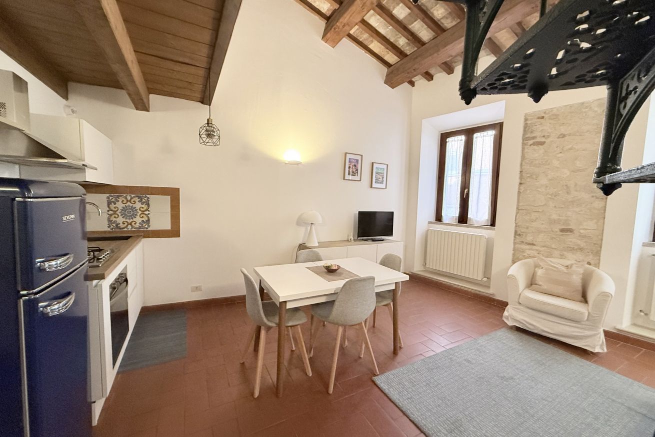 Composto da soggiorno con divano, tavolo da pranzo ed angolo cottura - camera padronale con letto matrimoniale - bagno con box doccia e lavatrice - soppalco con secondo letto matrimoniale ed aria condizionata.