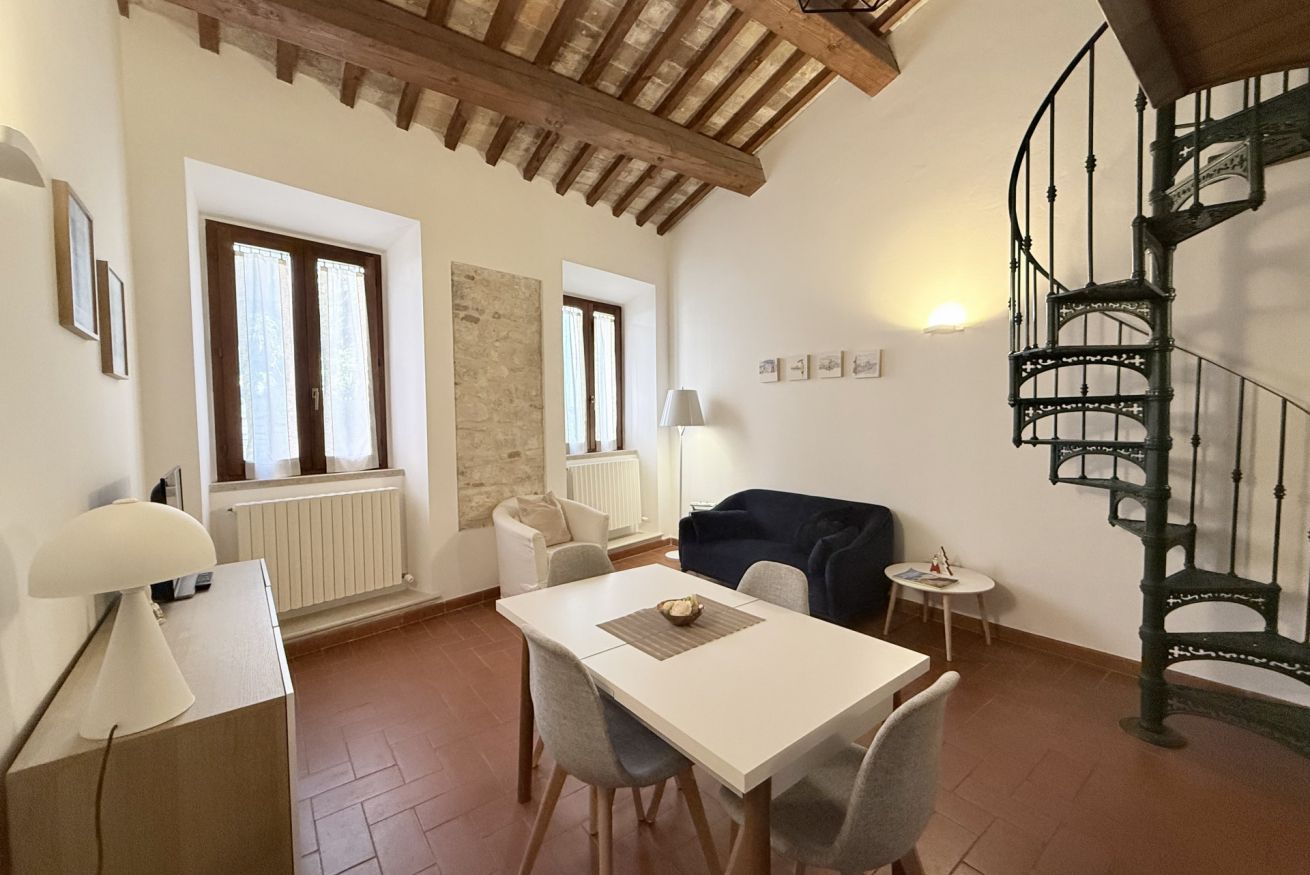 Descrizione: Primo piano di meraviglioso palazzo storico in pietra bianca del Conero. Completamente ristrutturato con meravigliosi travi a vista.