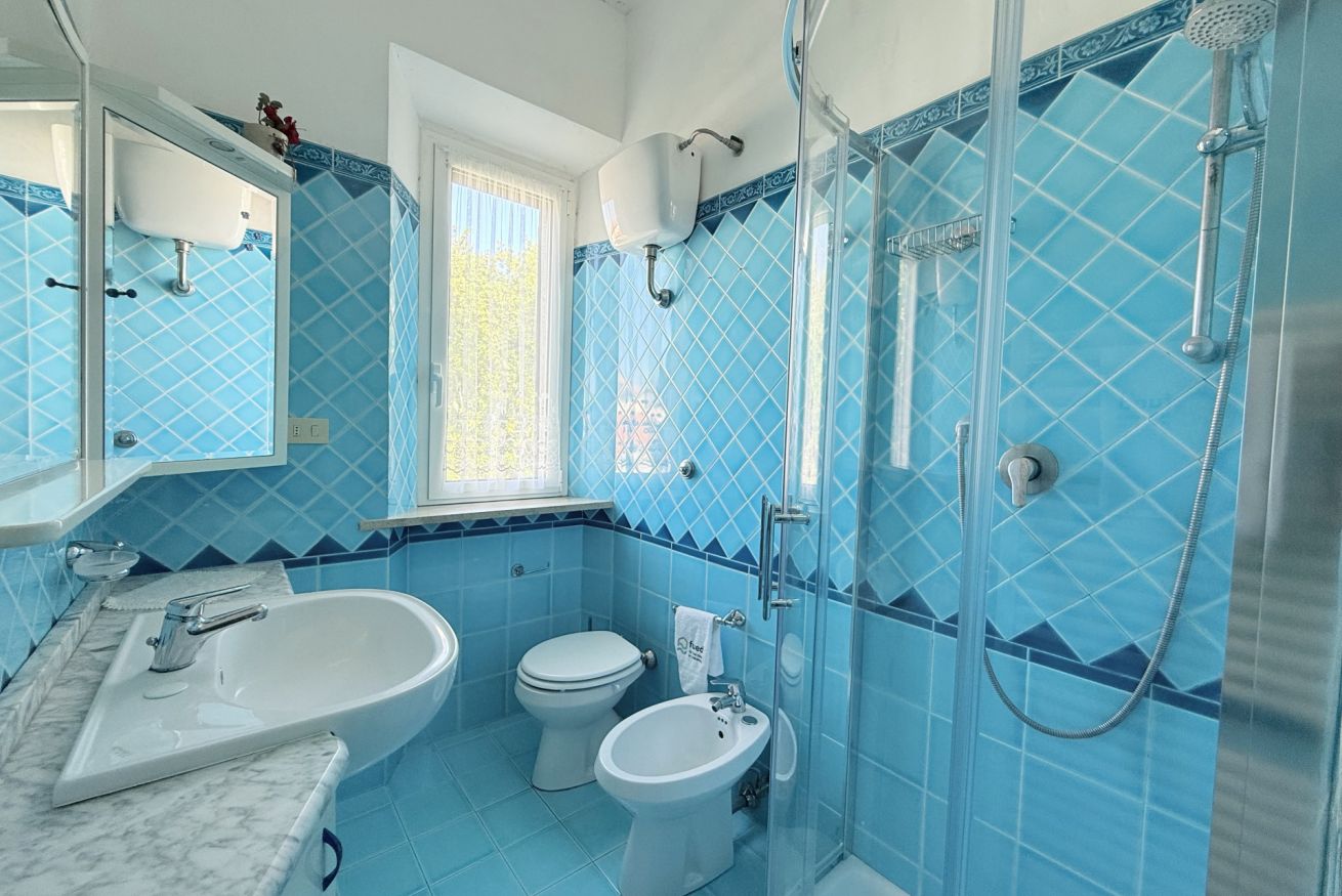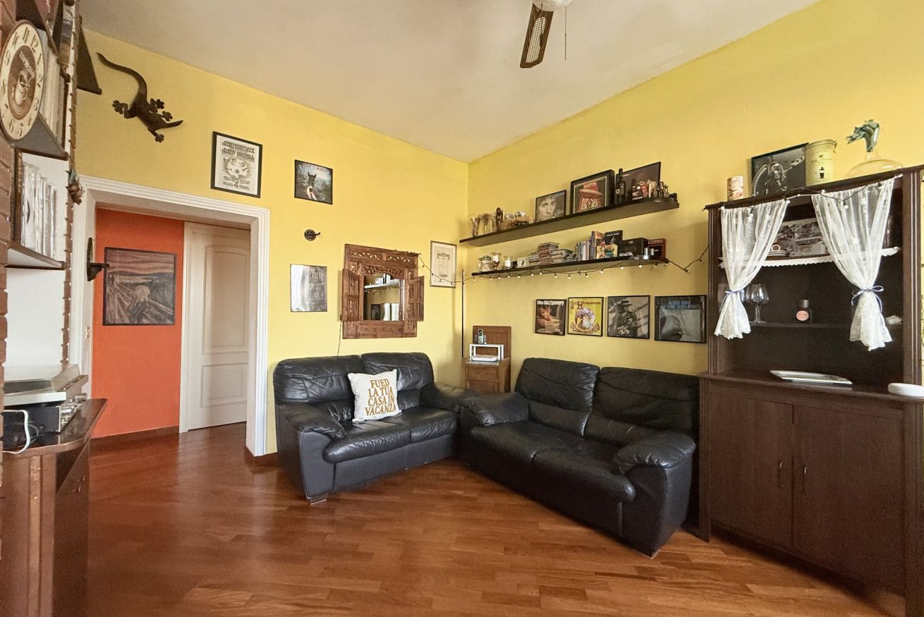 Descrizione: al primo piano, ingresso su luminoso soggiorno con tavolo da pranzo, angolo cottura e divano letto matrimoniale – ampia camera con letto matrimoniale – bagno con box doccia. Inoltre la soluzione è dotata di posto auto all'interno della corte condominiale, aria condizionata in zona giorno e wifi gratuito. Al piano terra si trovano la stanza lavanderia con lavatrice e un comodo cortiletto privato. Animali non ammessi