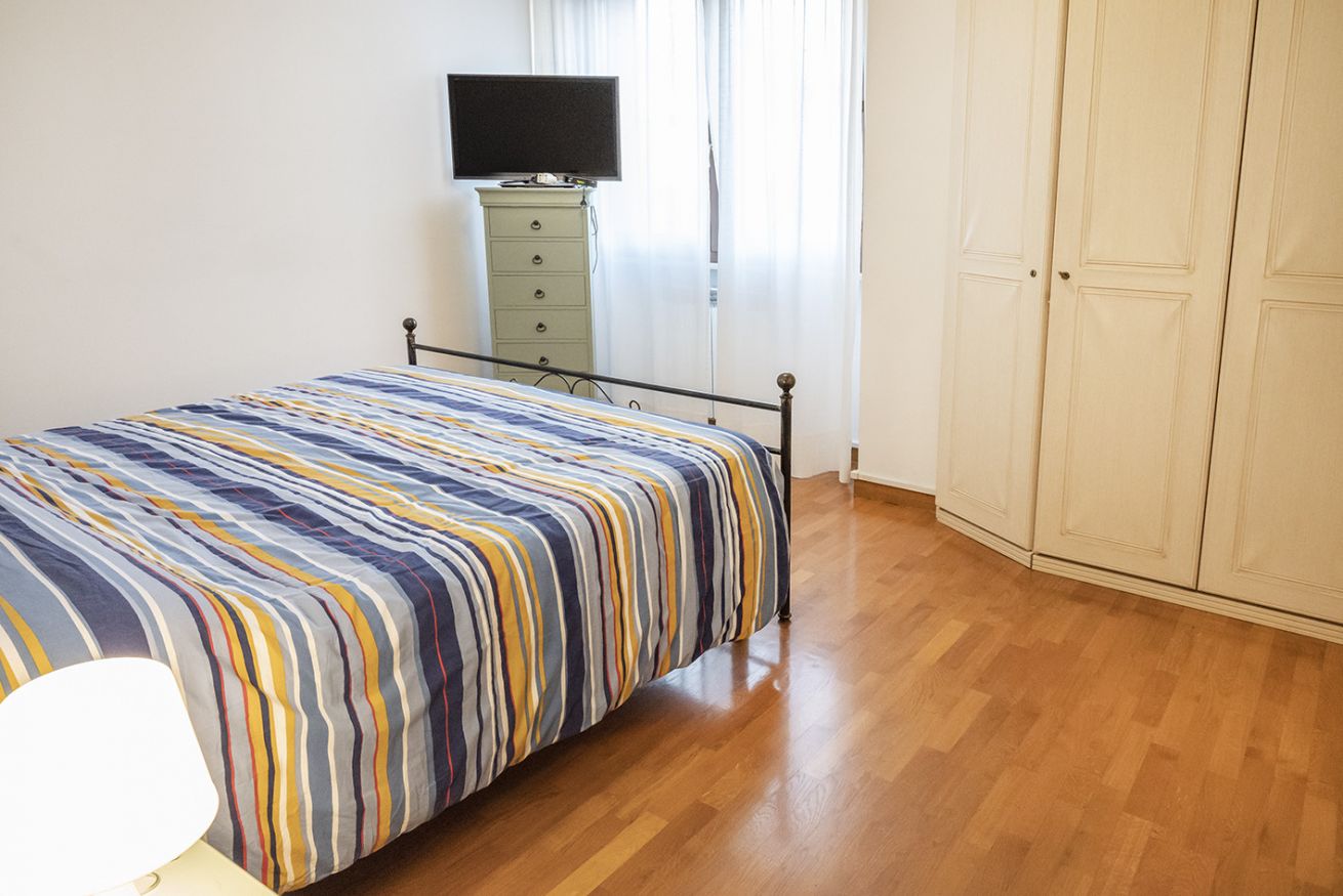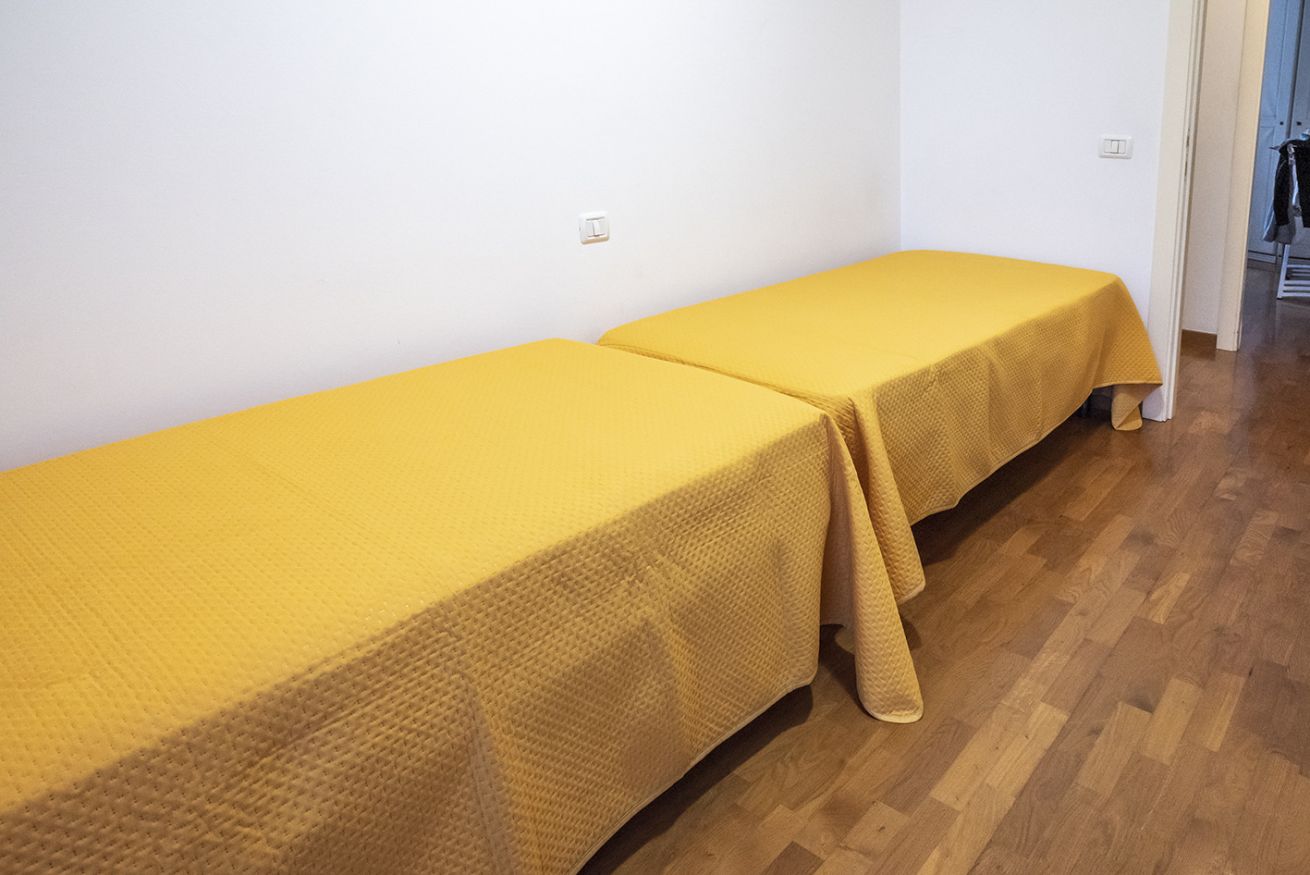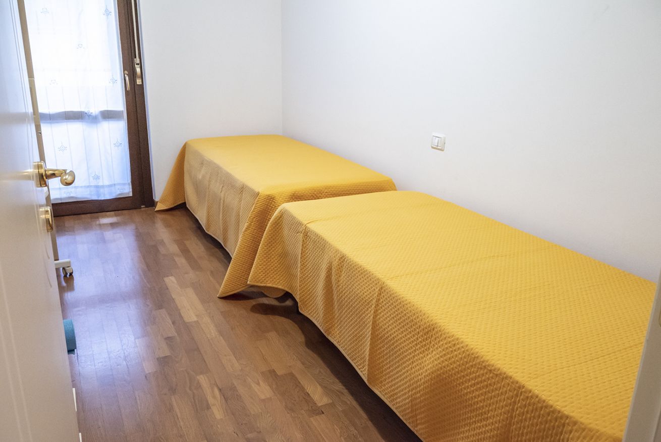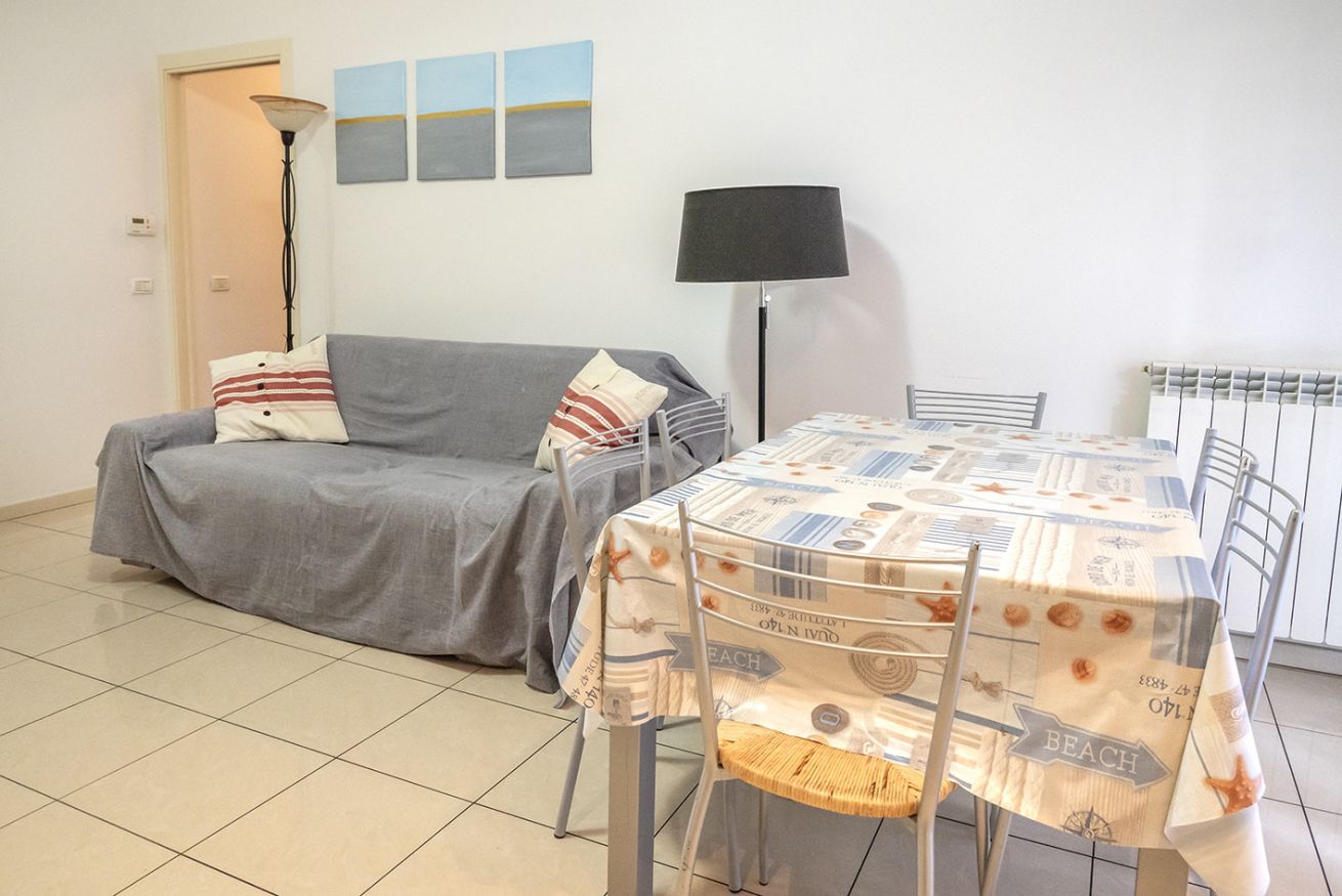 Descrizione: nuovo ed accogliente trilocale sito al primo piano con ascensore. Ingresso su luminoso soggiorno con divano-letto matrimoniale e tavolo da pranzo, cucina attrezzata con lavastoviglie, camera con letto matrimoniale, seconda camera con due letti singoli, bagno completo con box doccia e lavatrice.
