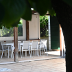 Descrizione: ampia e comoda villetta indipendente con dependance. Ingresso su soggiorno con tavolo da pranzo, angolo cottura accessoriato e divano letto matrimoniale - primo bagno completo con vasca - camera padronale matrimoniale completa di bagno privato con box doccia - seconda camera con due letti singoli - dal soggiorno si accede ad un piccolo soppalco con un letto singolo - uscendo dal soggiorno si accede al cortile con giardino e patio attrezzato con grande tavolo da pranzo e barbecue. Entrando nella dependance troviamo piccolo ingresso con tavolino e angolo colazione con frigorifero - altra camera padronale con letto matrimoniale e bagno privato completo con box doccia e lavatrice. Inclusi due posti auto. Animali ammessi.