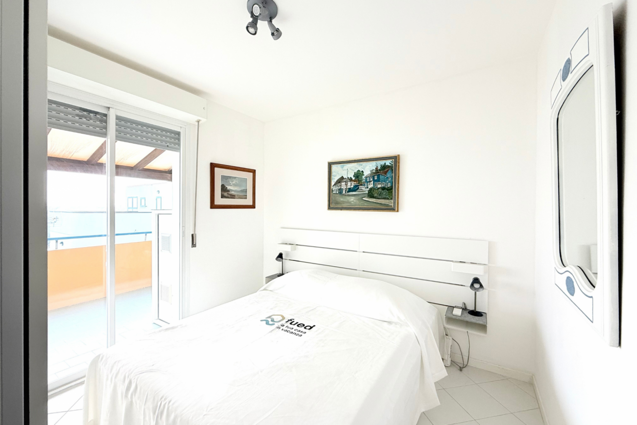 Ingresso su soggiorno con angolo cottura, tavolo da pranzo ed accesso al meraviglioso terrazzo fronte mare, attrezzato con tavolo e sedie - camera matrimoniale con accesso al terrazzo - seconda camera con 2 divani letto matrimoniali - bagno completo con box doccia e lavatrice. Completa la proprietà aria condizionata in ogni stanza.