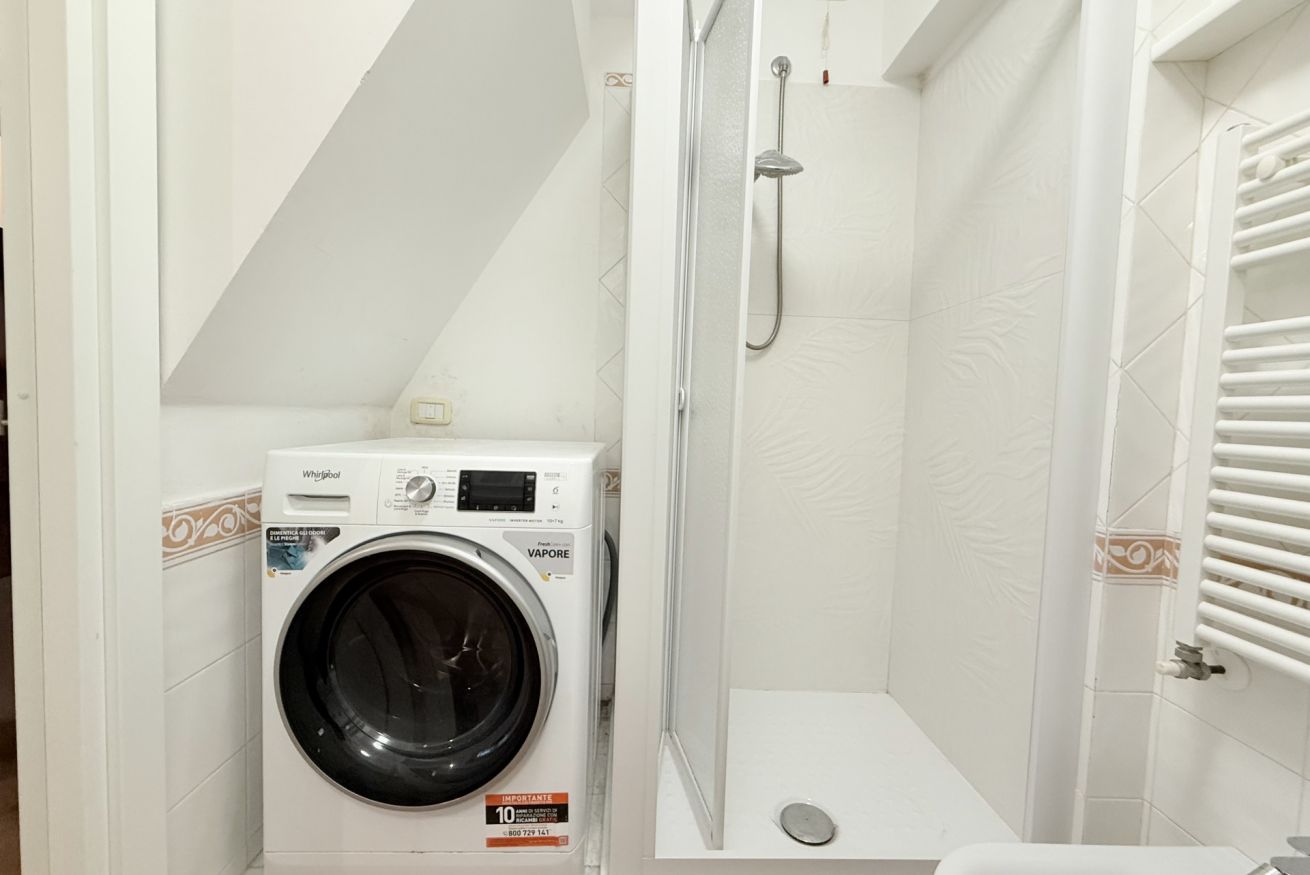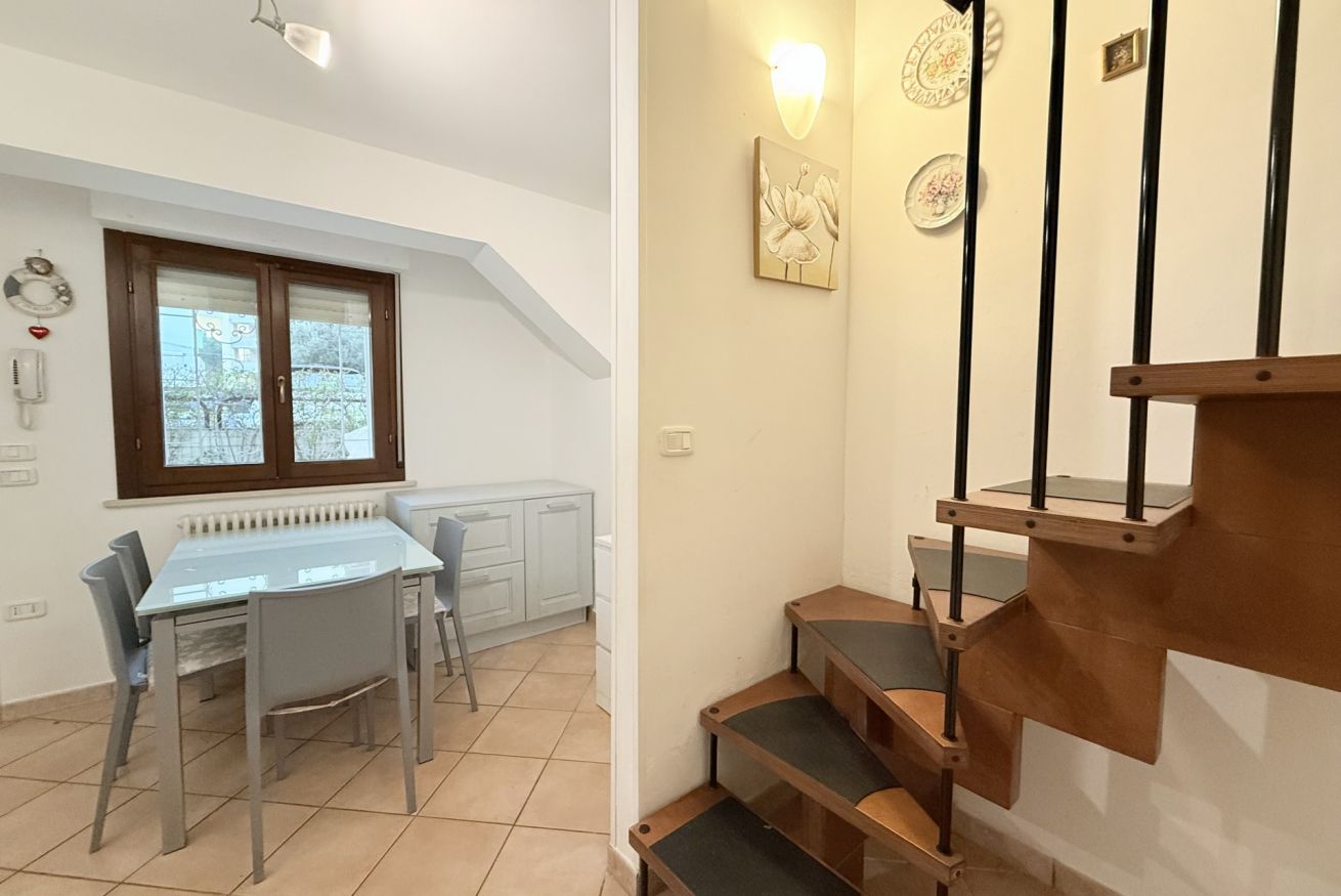 Descrizione: appartamento sviluppato su due livelli. Ingresso al piano terra su angolo cottura dotato di lavastoviglie - soggiorno - bagno completo con box doccia e lavatrice. Al piano superiore: camera matrimoniale - seconda camera matrimoniale - bagno completo con box doccia. Grande portico con veranda attrezzato con tavolo e sedie per poter mangiare.