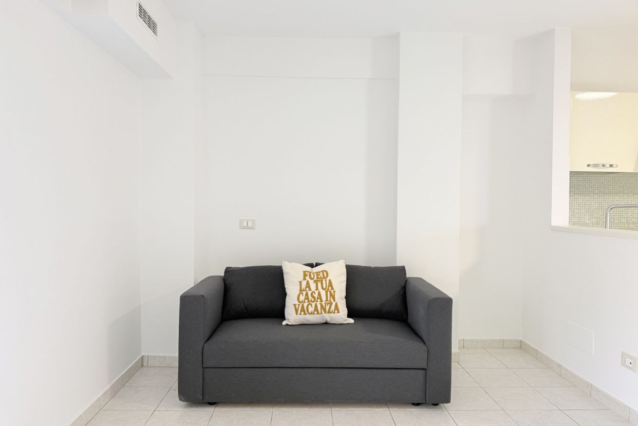 Descrizione: comodo bilocale situato al piano terra. Soggiorno con divano letto matrimoniale – cucina attrezzata – camera con letto matrimoniale – bagno con box doccia. Completano la soluzione: corte pavimentata esclusiva con tavolo e sedie, perfetta per momenti di relax all’aperto, aria condizionata in zona giorno, lavatrice nel disimpegno, posto auto riservato su strada. Animali ammessi.