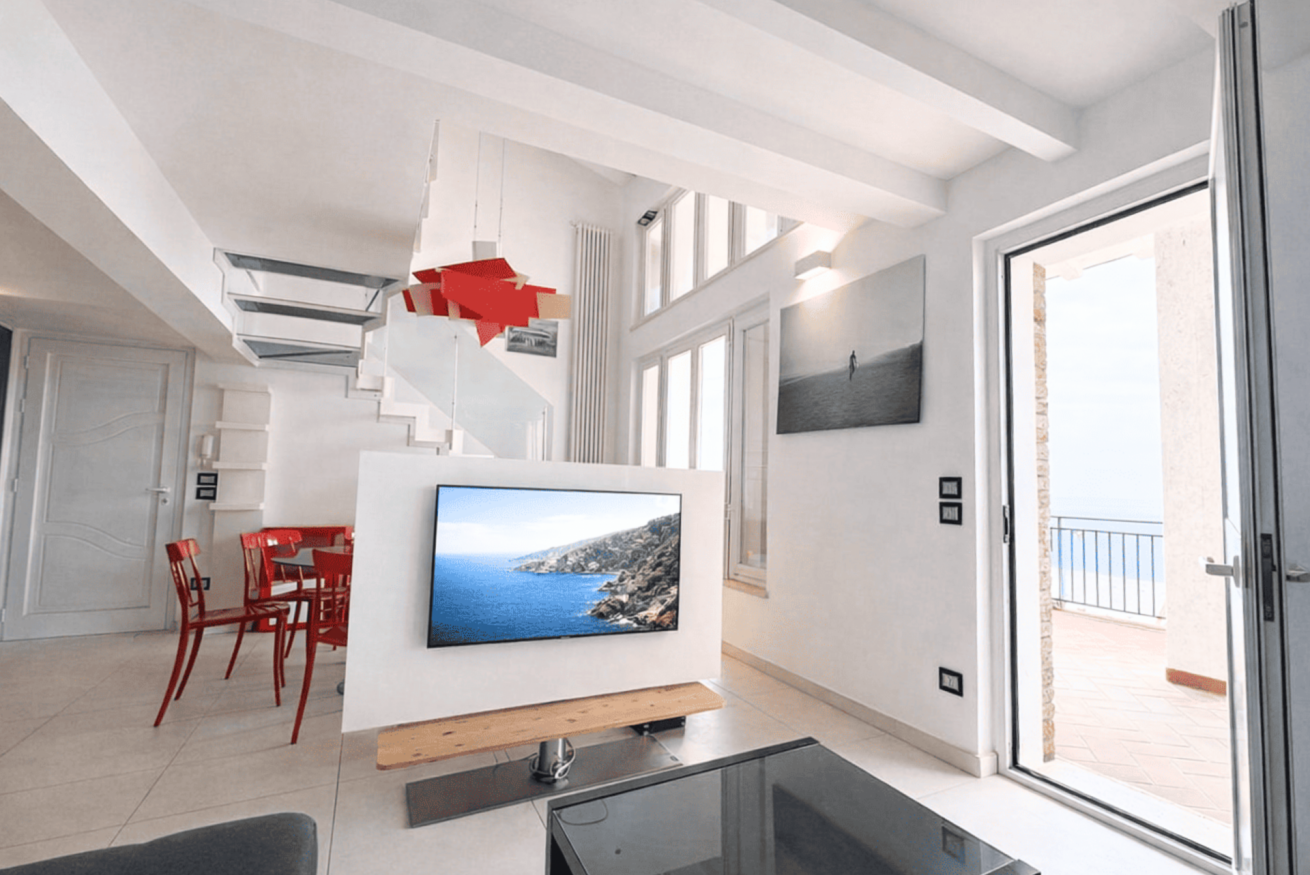 Descrizione: trilocale ampio e luminoso, ideale per soggiorni confortevoli e rilassanti. Ingresso su spaziosa zona giorno con divano letto matrimoniale e accesso al balcone vista mare – angolo cottura moderno e completamente accessoriato – due camere matrimoniali nel soppalco – doppi servizi, di cui uno con vasca e uno con box doccia. Completano la soluzione: lavatrice, lavastoviglie, aria condizionata in zona notte. Animali ammessi.