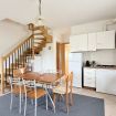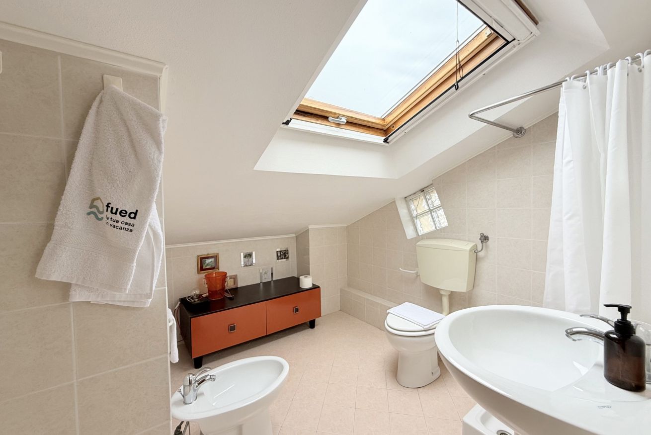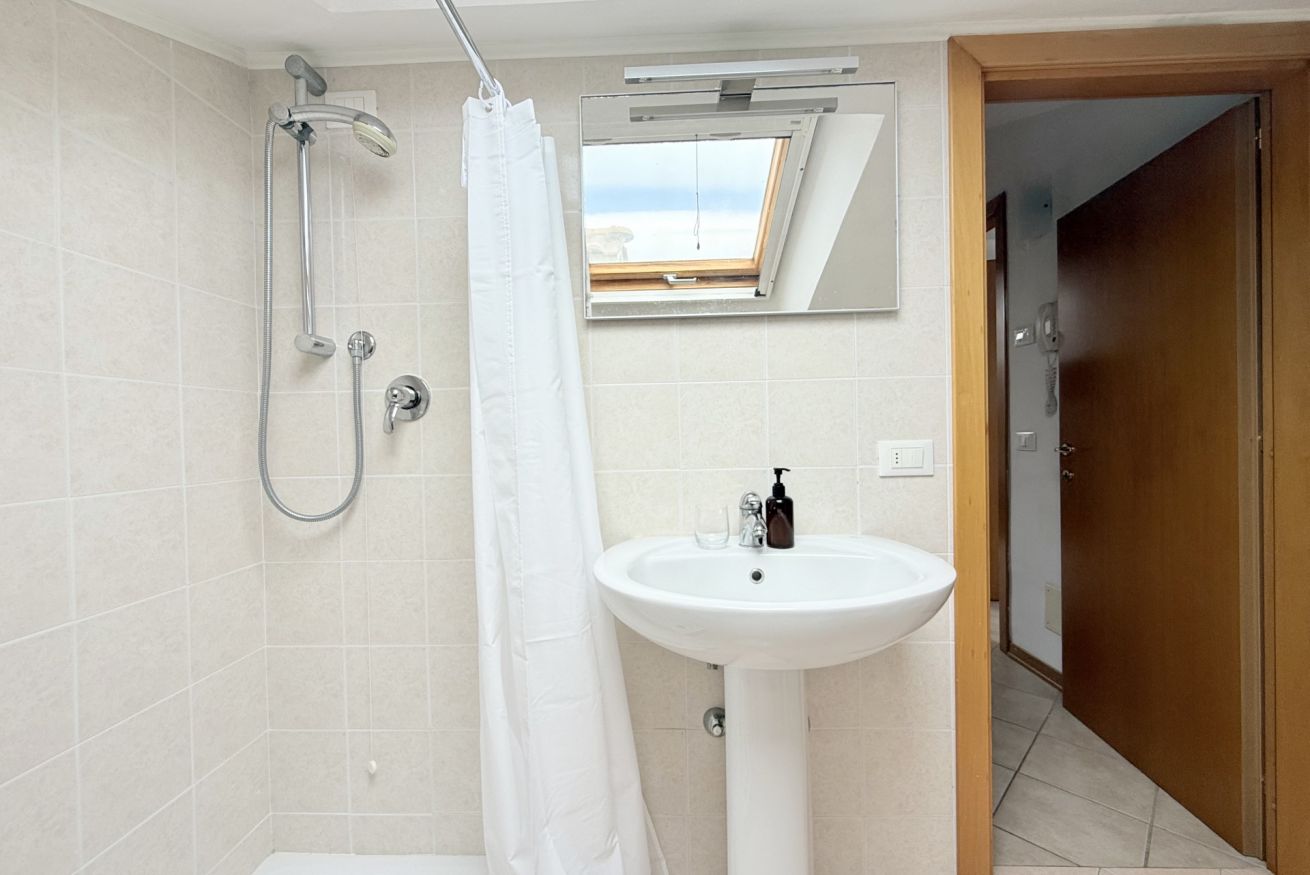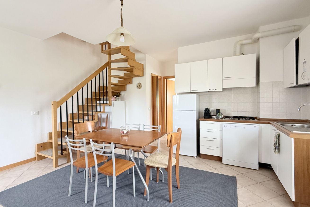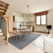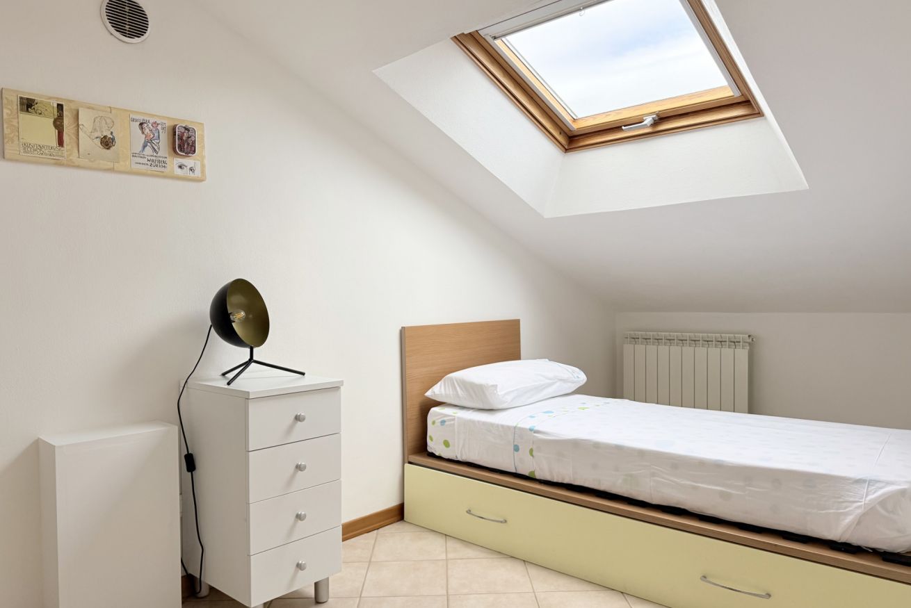 Descrizione: ampio quadrilocale su due livelli. Ingresso al piano terra su soggiorno con angolo cottura dotato di lavastoviglie – camera matrimoniale – bagno completo con box doccia e lavatrice. Al piano superiore si accede ad una camera con letto matrimoniale e letto singolo – seconda camera con letto singolo – bagno con doccia. Ampio giardino.