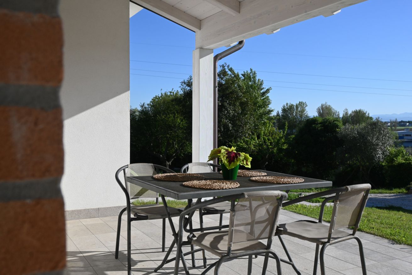 Al piano superiore camera con letto matrimoniale – bagno completo con box doccia. Completa la proprietà giardino e corte pavimentata con tavolo e sedie a disposizione, posto auto riservato nella proprietà.