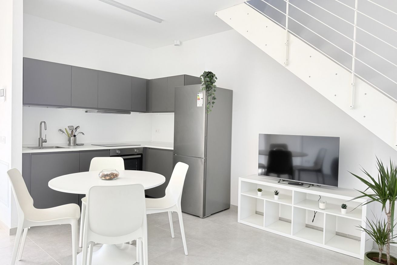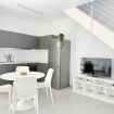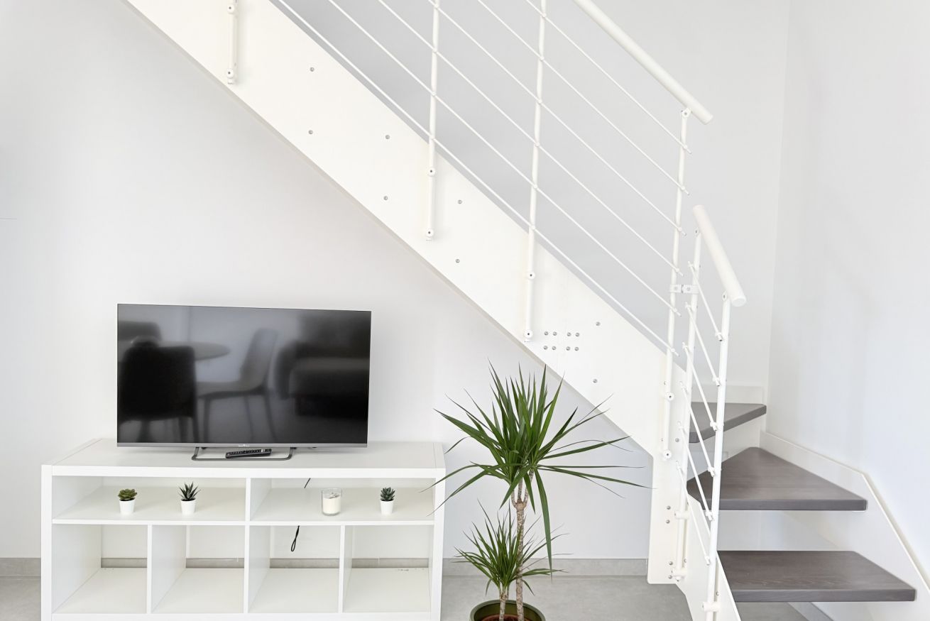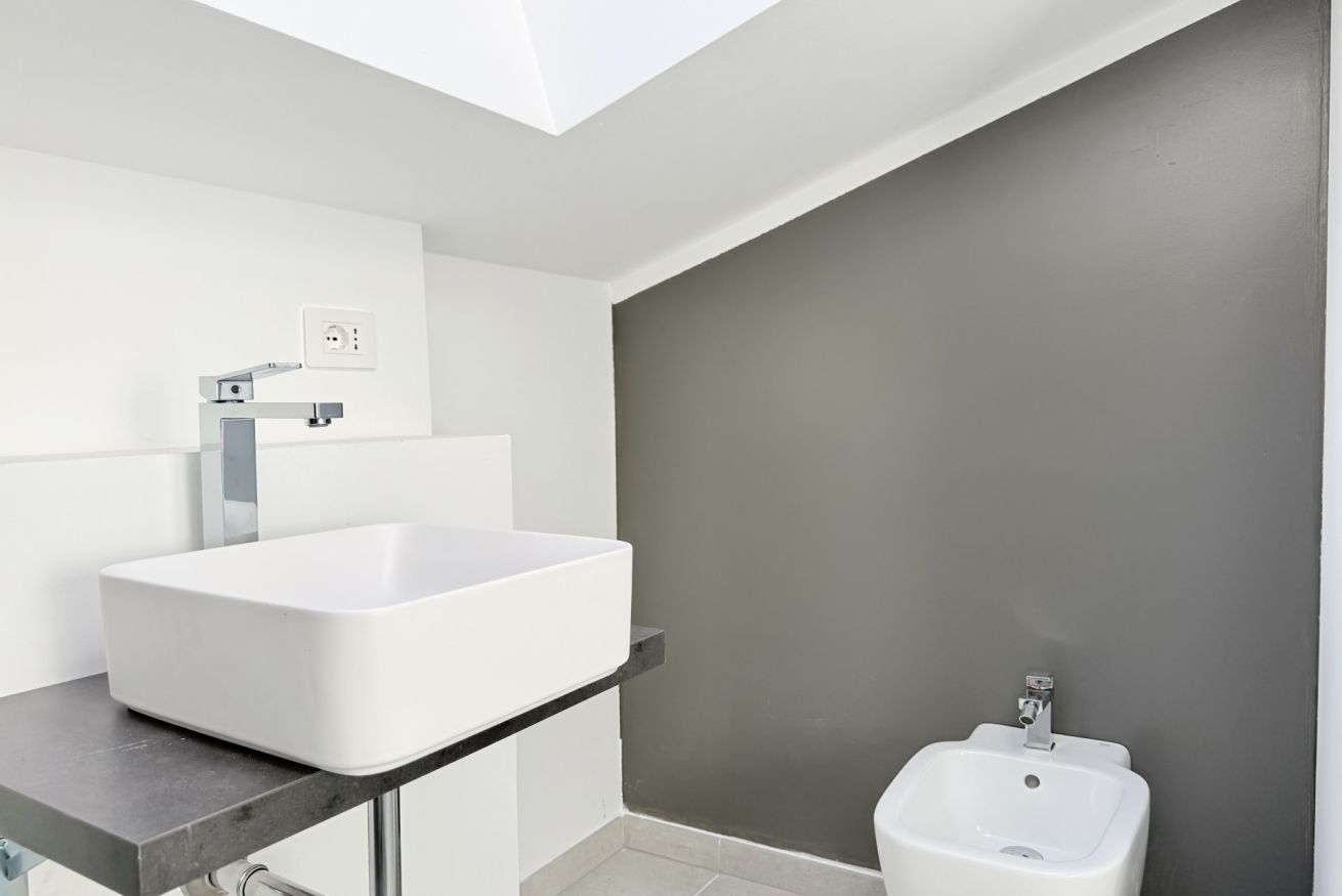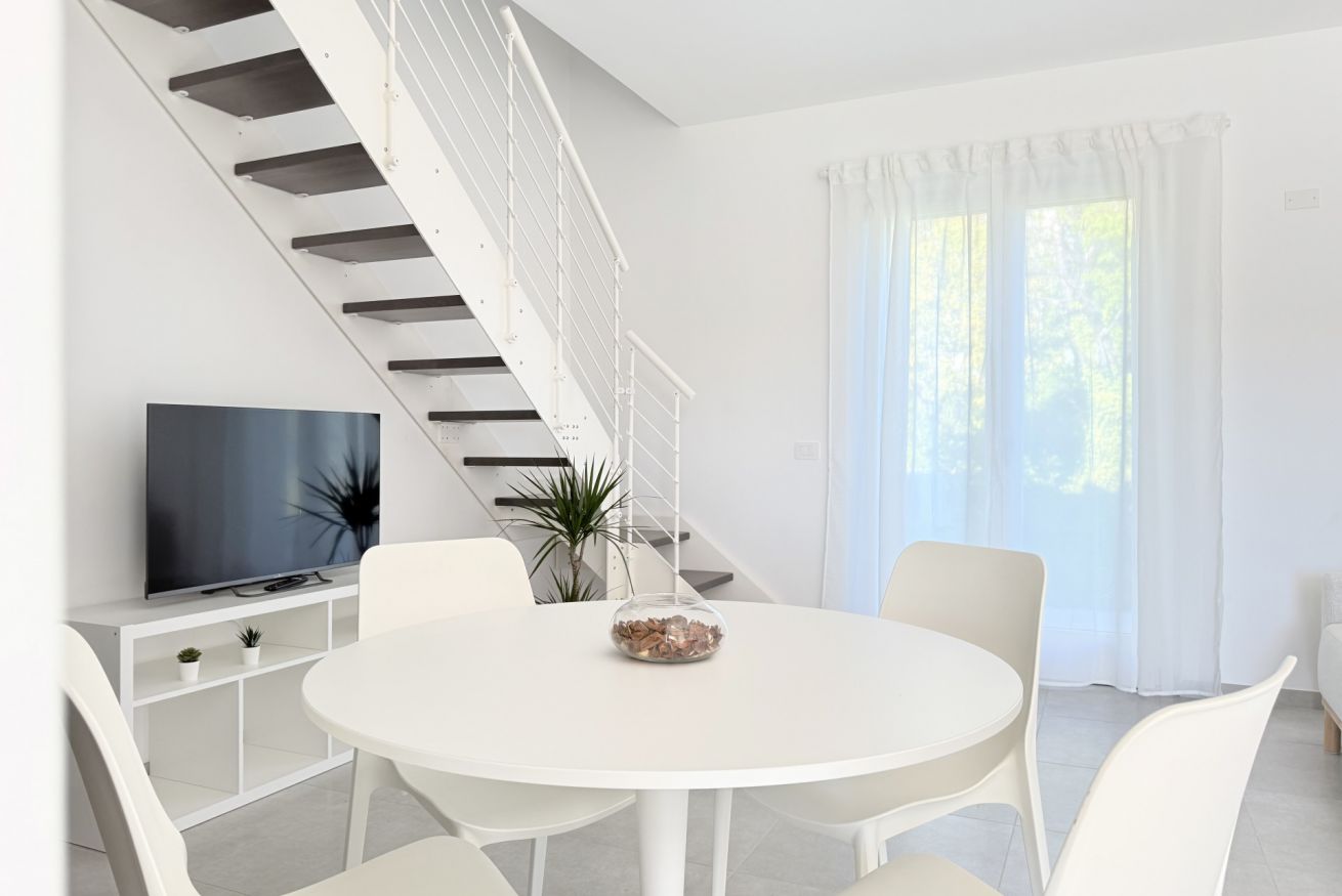 Descrizione: accogliente ed elegante bilocale completamente rinnovato, piano terra e mansarda. Ingresso su ampio soggiorno con divano – letto matrimoniale, TV e luminosa cucina con tavolo da pranzo e lavastoviglie, bagno completo con box doccia e lavatrice.