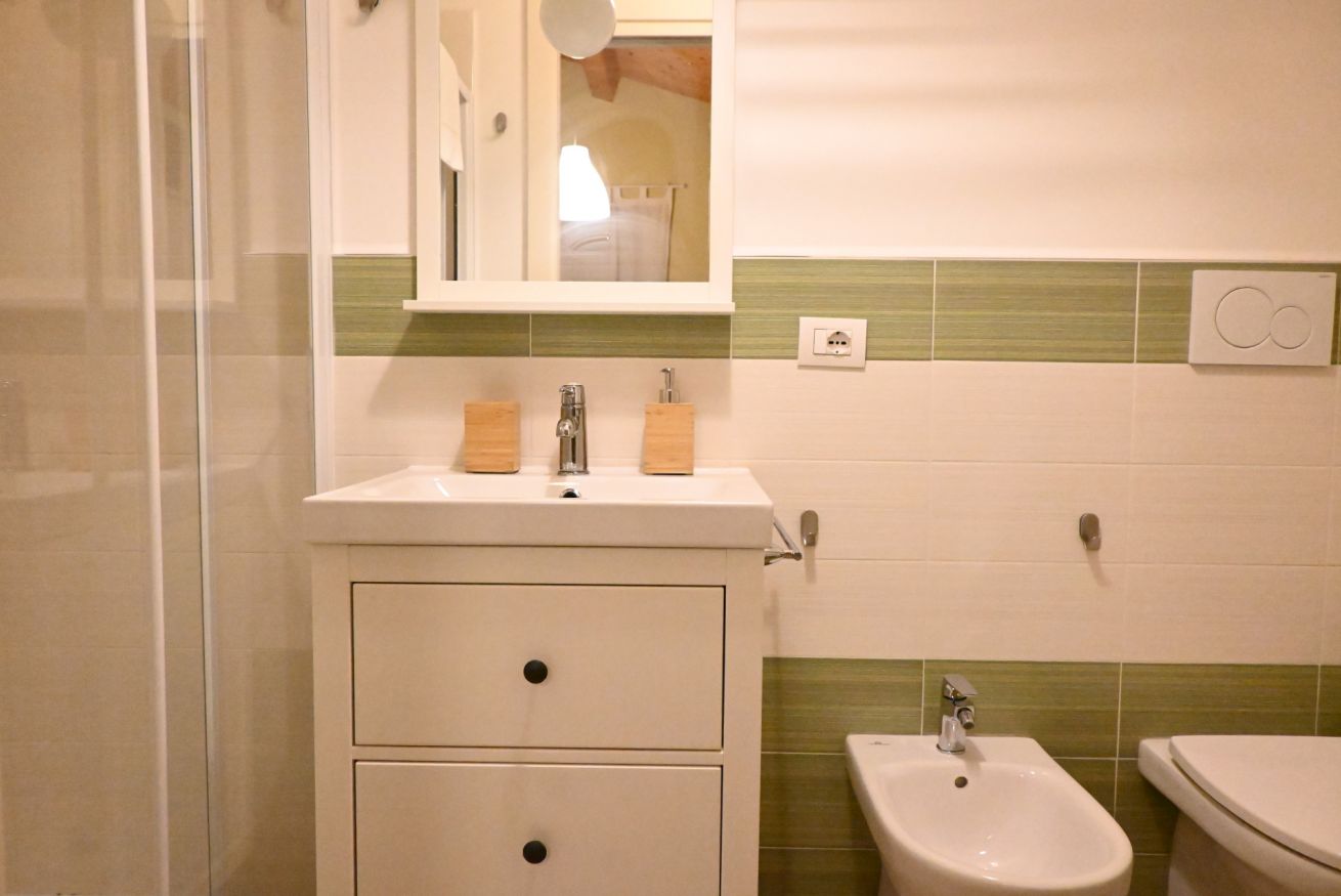 Piano terra: ingresso su ampio e luminoso salone con divano, tavolo da pranzo, cucina super accessoriata con lavastoviglie - camera con letto matrimoniale e bagno en suite - bagno con box doccia doccia e lavatrice - accogliente patio esterno.