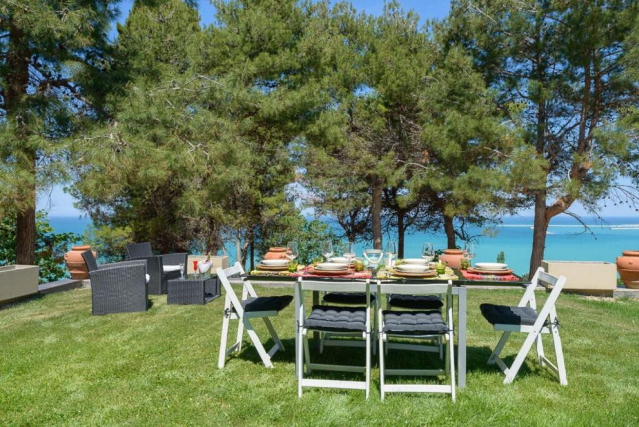 All’esterno, la villa dispone di un ampio giardino a completa disposizione degli ospiti e di una splendida piscina privata con vista mare, perfetta per momenti di relax durante la stagione estiva.