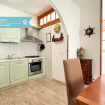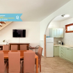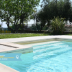 Porzione di villa con piscina. Ingresso indipendente. Piano terra: Ampio soggiorno con divano, tavolo da pranzo ed angolo cottura con lavastoviglie - delizioso portico privato e recintato attrezzato con tavolo, sedie e barbecue in muratura ad uso esclusivo.